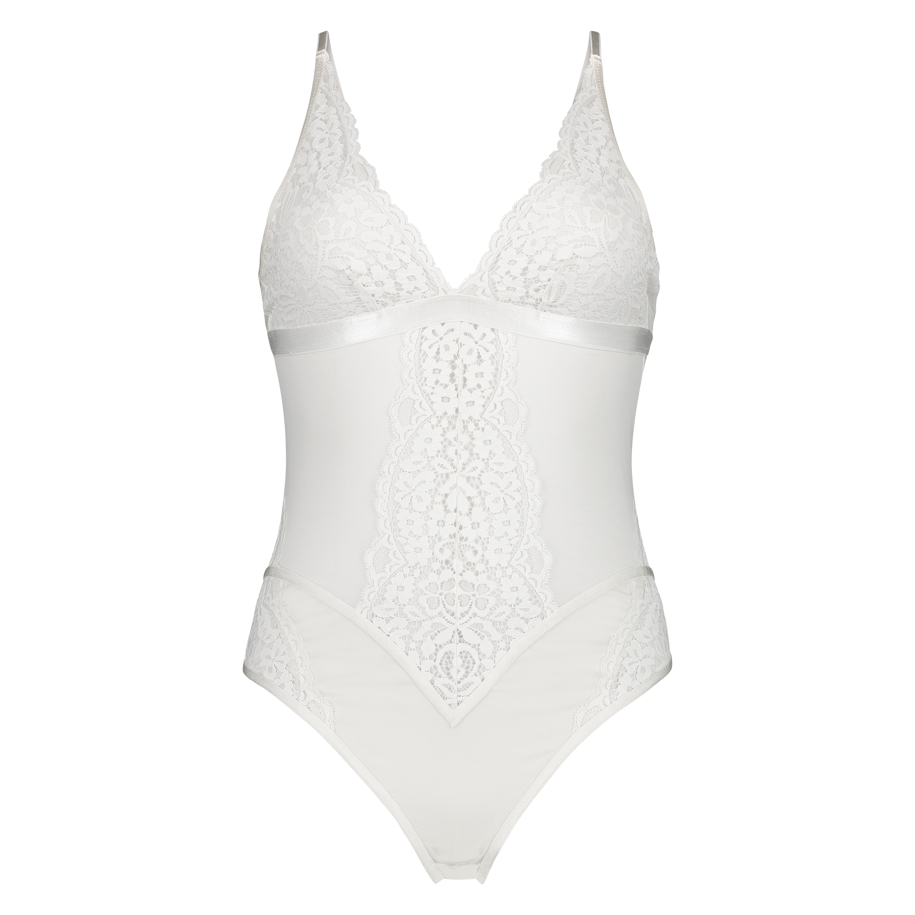 Føl deg veldig feminin i denne bodyen som har en kombinasjon av halvt gjennomsiktig stoff og blondestoff. Trykknapp-lukningen i skrittet gjør det lett å ta på og av denne bodyen. Hva mer kunne du vel ønske deg?