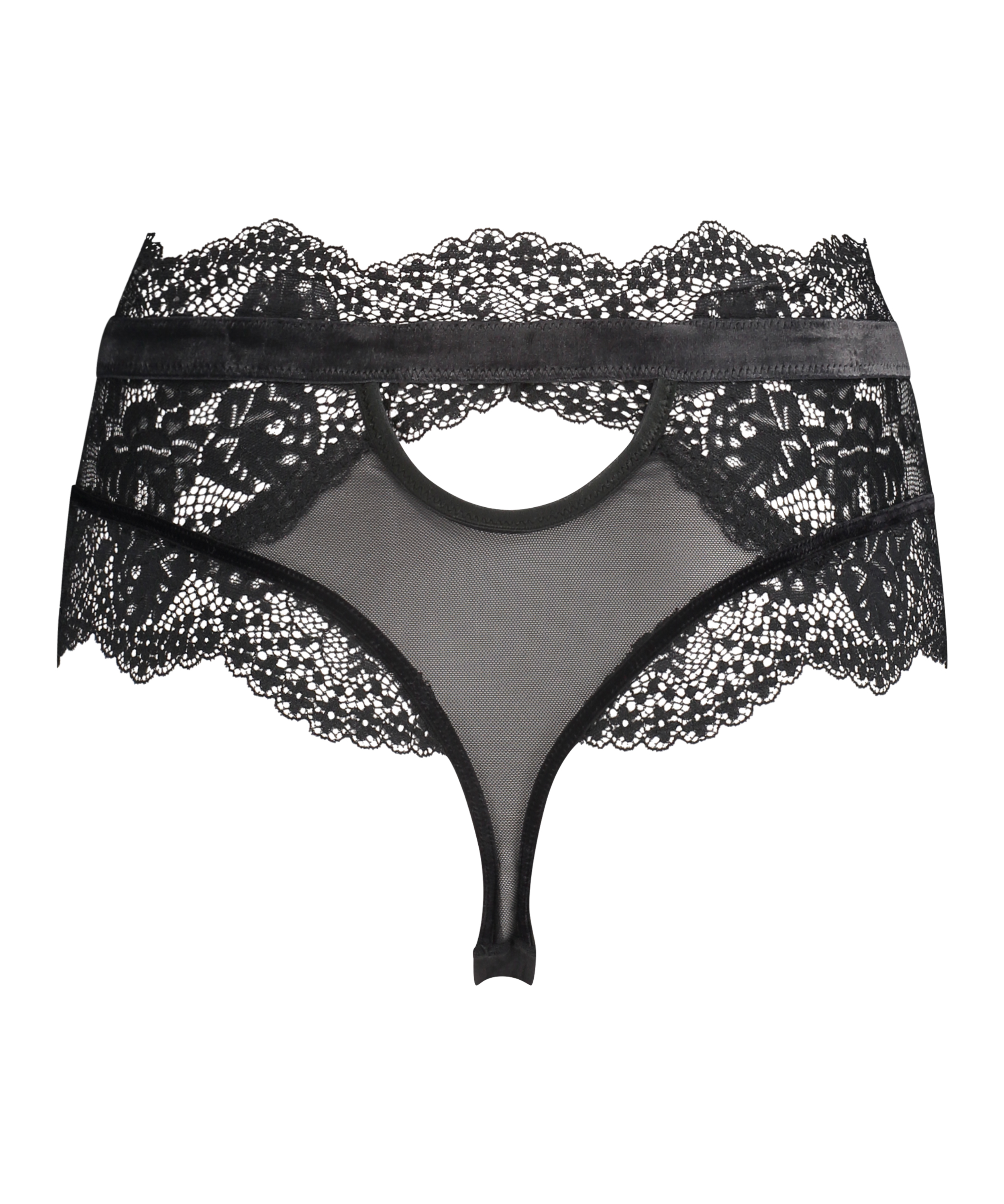Hvis du er interessert i blonder, vil denne g-strengen være perfekt. Den er laget fullt og helt av halvt gjennomsiktige blonder og forsynt med et elastisk fløyelsbånd i midjen. Super trendy! En del av kolleksjonen med Rebecca Mir.
