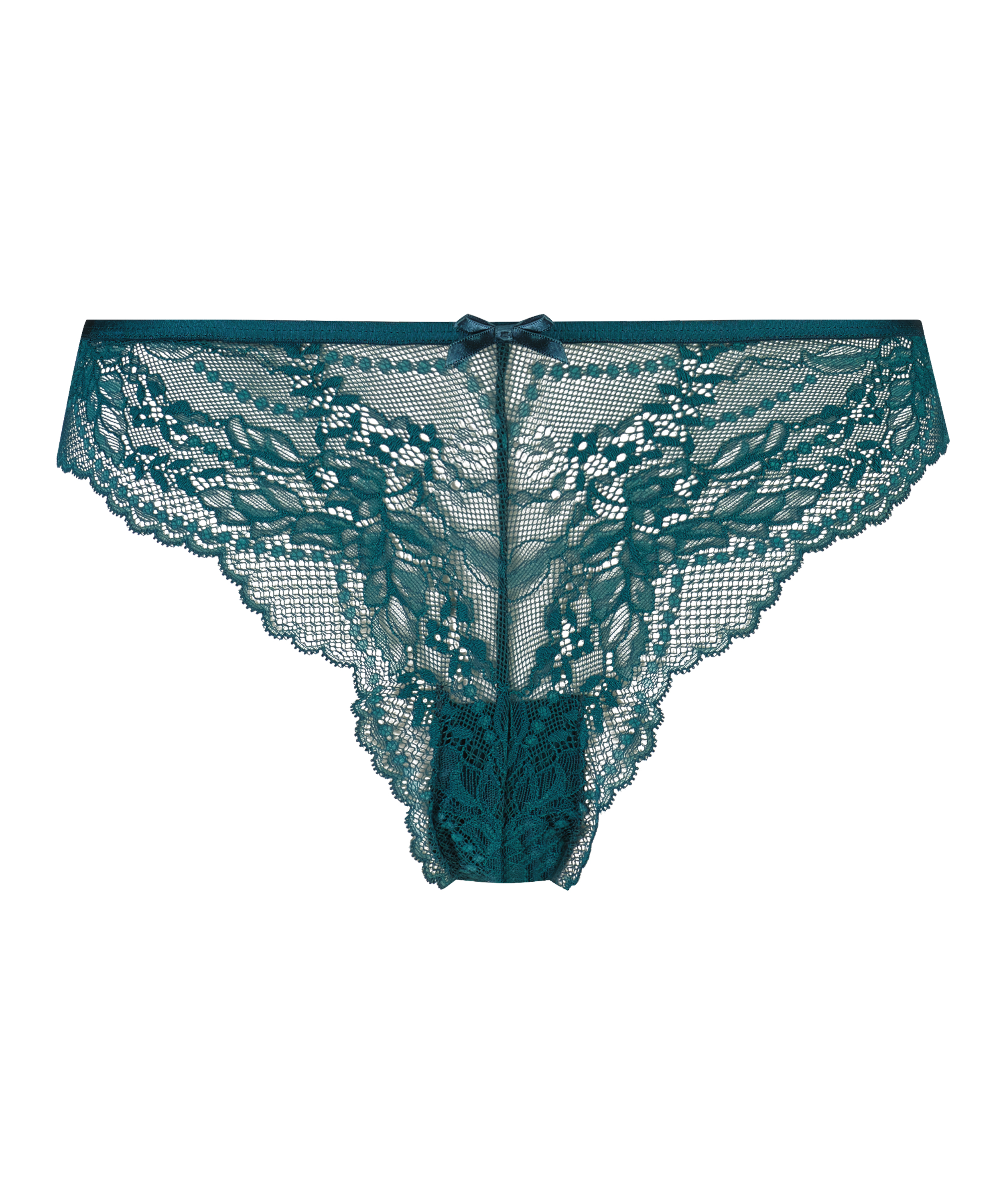 Fullfør din sexy look med denne brasilianeren. Den er laget av blonder med en sløyfe foran som en fin fullendende detal. Kombiner med favoritt-BH-en din!