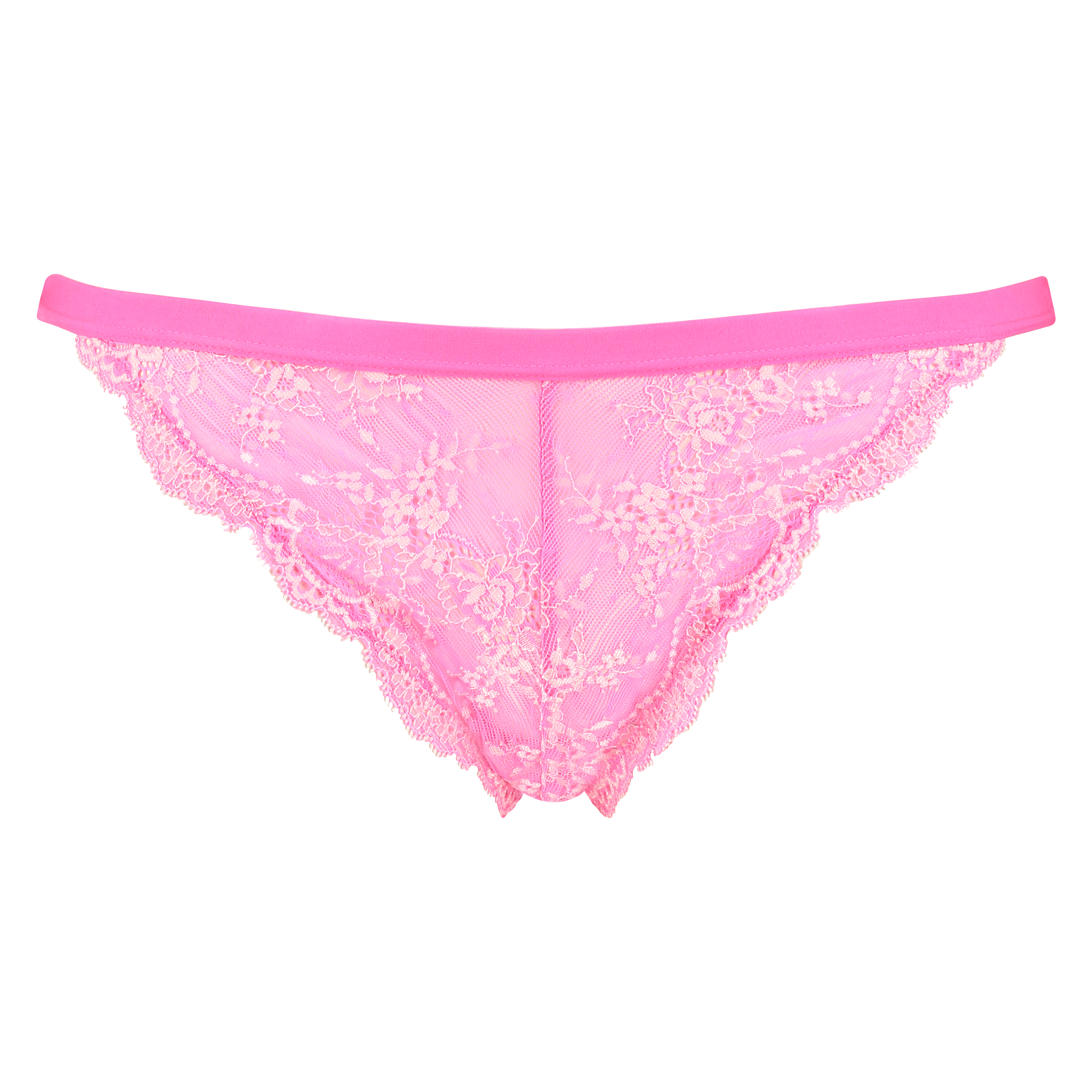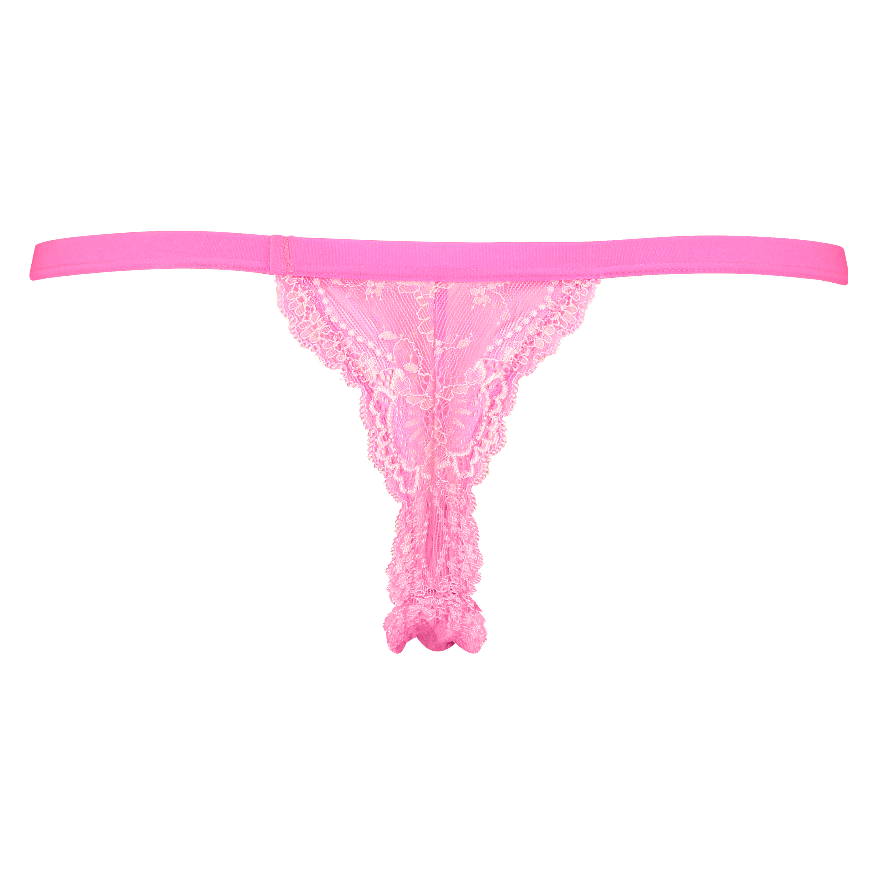 This mini-thong is made from semi-transparent lace with a floral pattern.