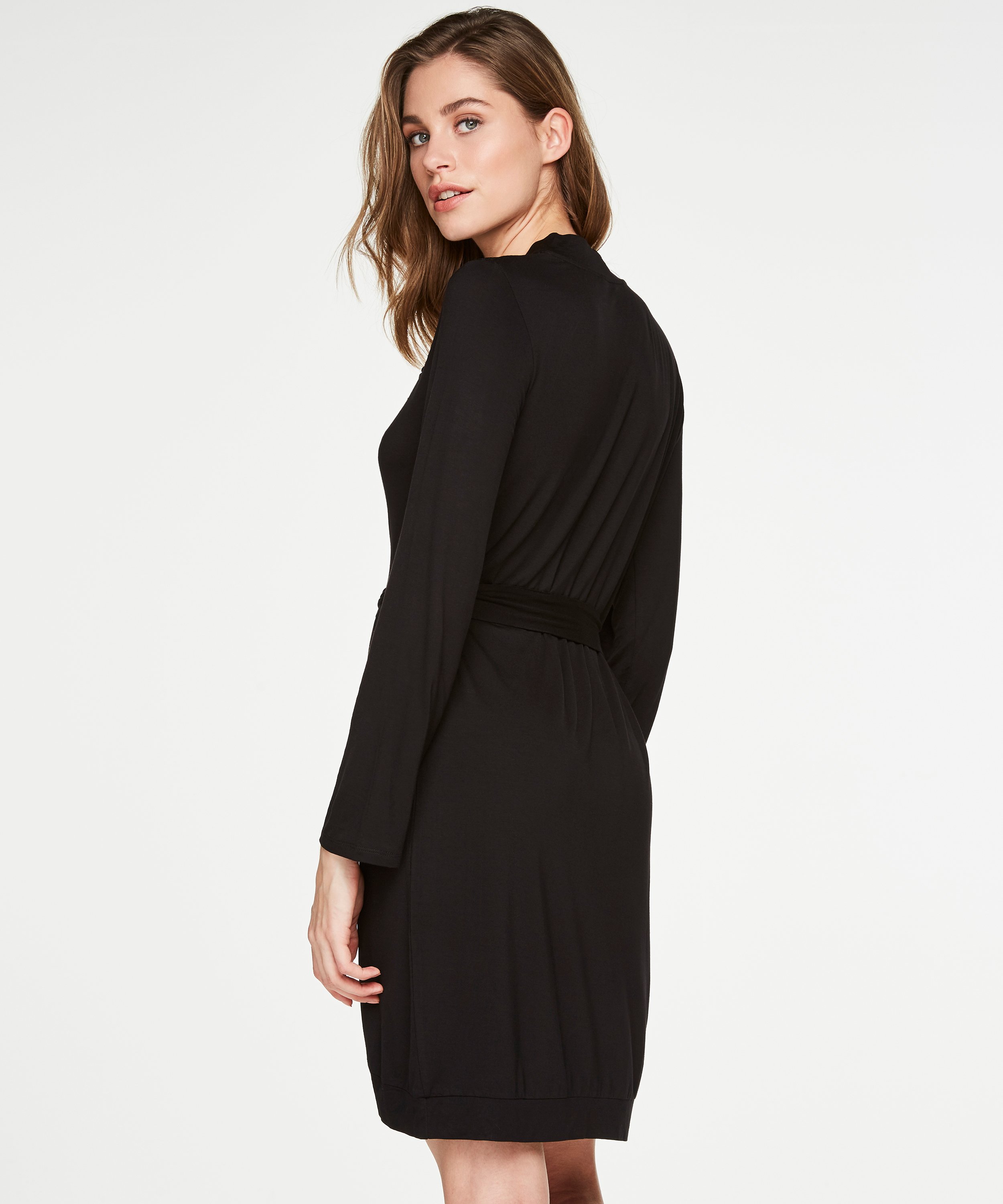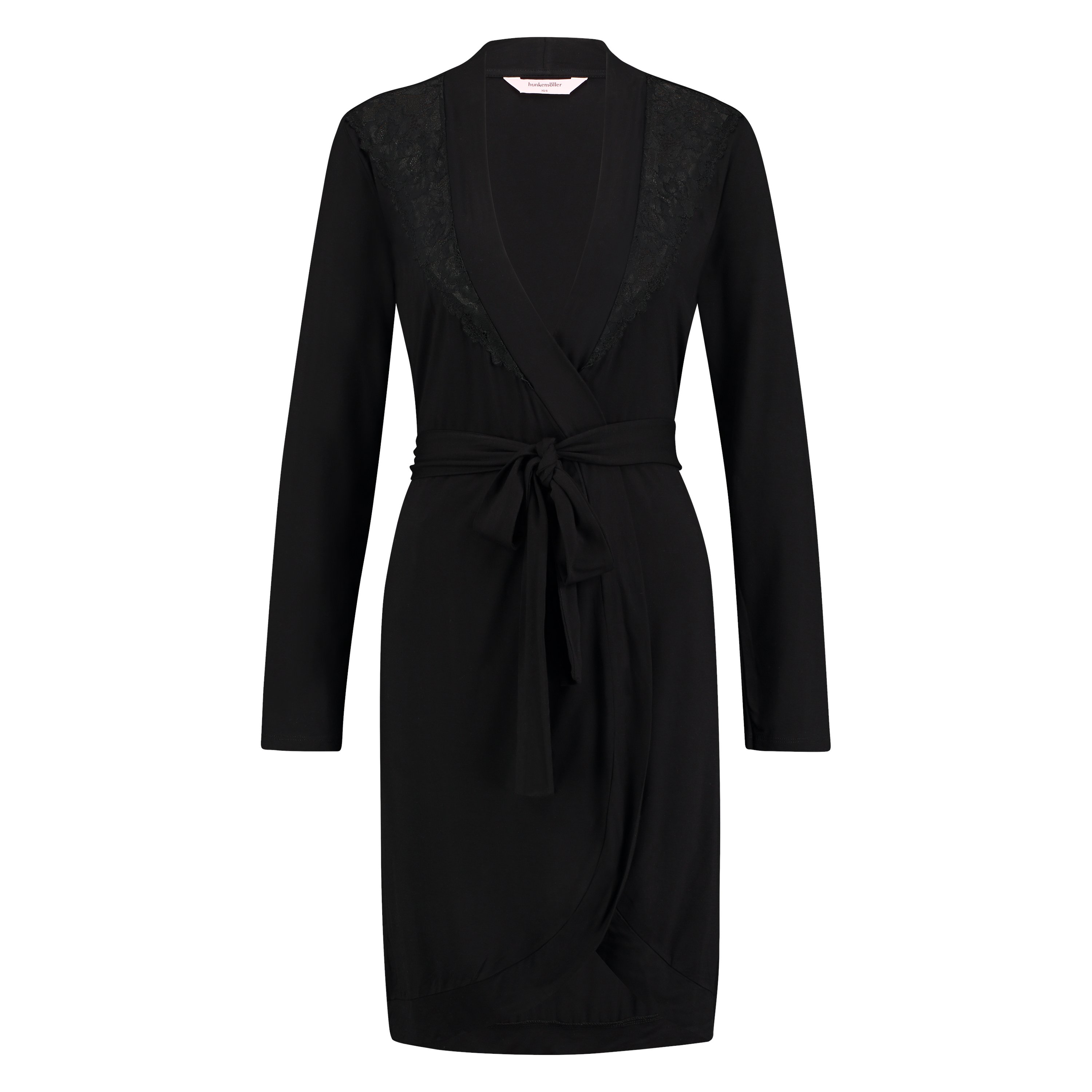 Komfortabel og sexy: Denne badekåpen er laget av mykt stoff og har blondepynt øverst. Denne badekåpen danner en fin kombinasjon med Modal Lace slipkjole.