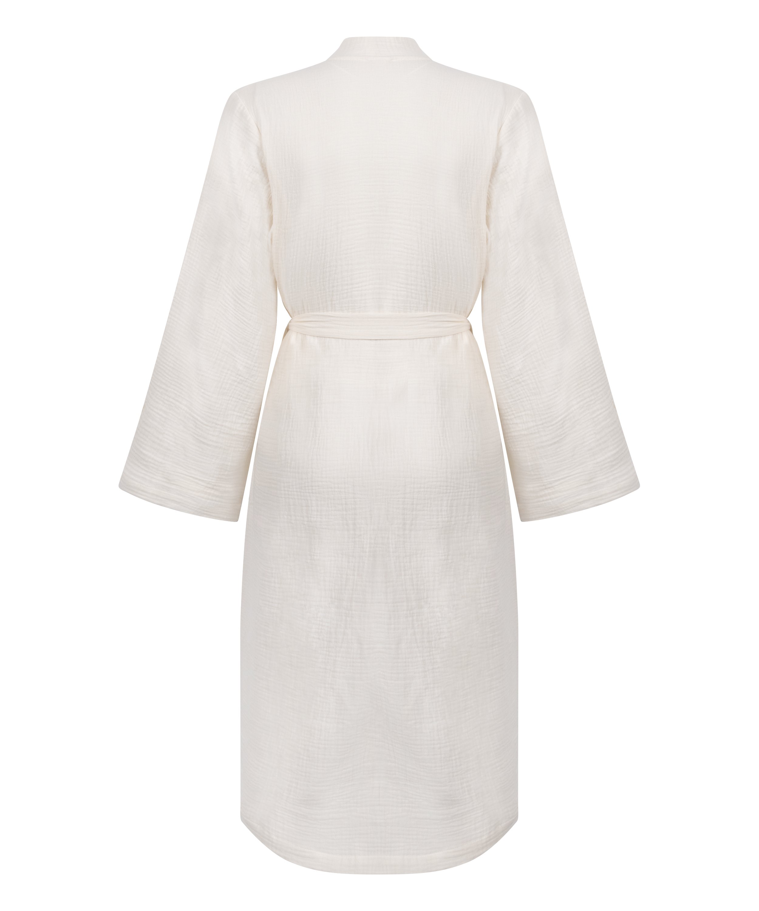 Slapp av med stil med denne (bade)kåpen i bomullsmusselin. De lange, vide ermene og det lette stoffet gir optimal komfort, mens det tynne beltet gjør at du kan justere passformen. Perfekt for å slappe av!