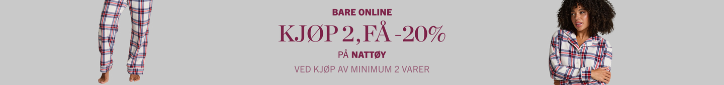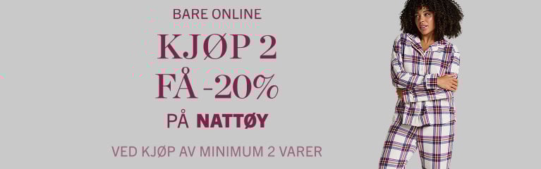 -20% på utvalgt nattøy, minst 2 varer+2 flere farger