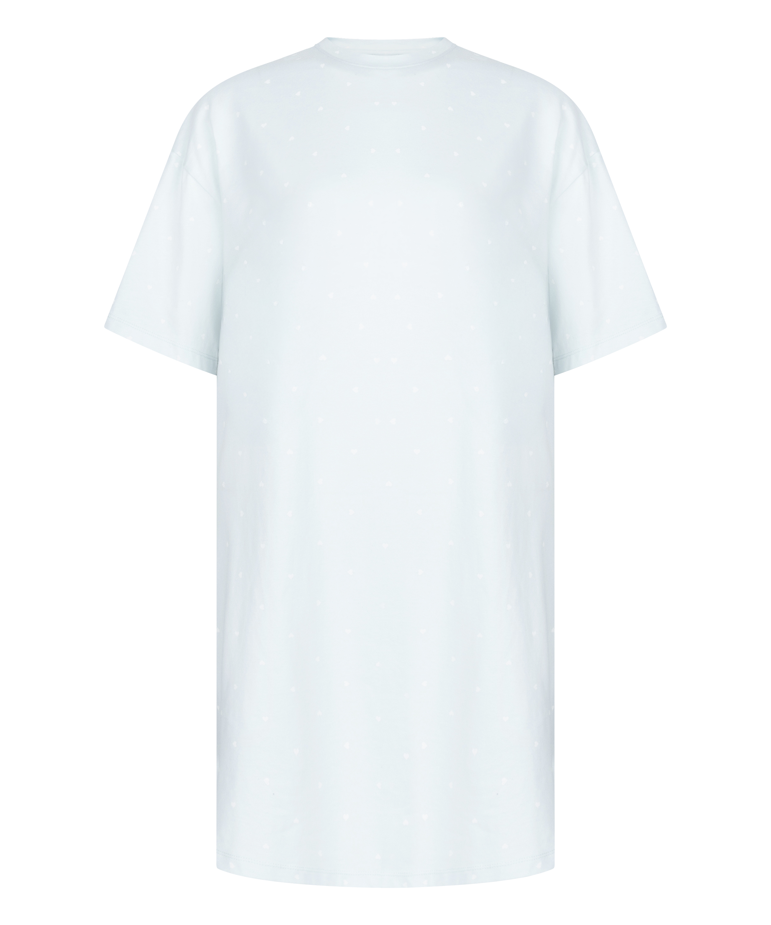 La deg dumpe ned i komforten med nattskjorten vår. Denne nattskjorten er designet for optimal avslapning og har en klassisk rund hals. Lengden når til rett over knærne, noe som gir en behagelig og beskjeden passform. Kombiner med favoritttøflene dine for en komplett look.