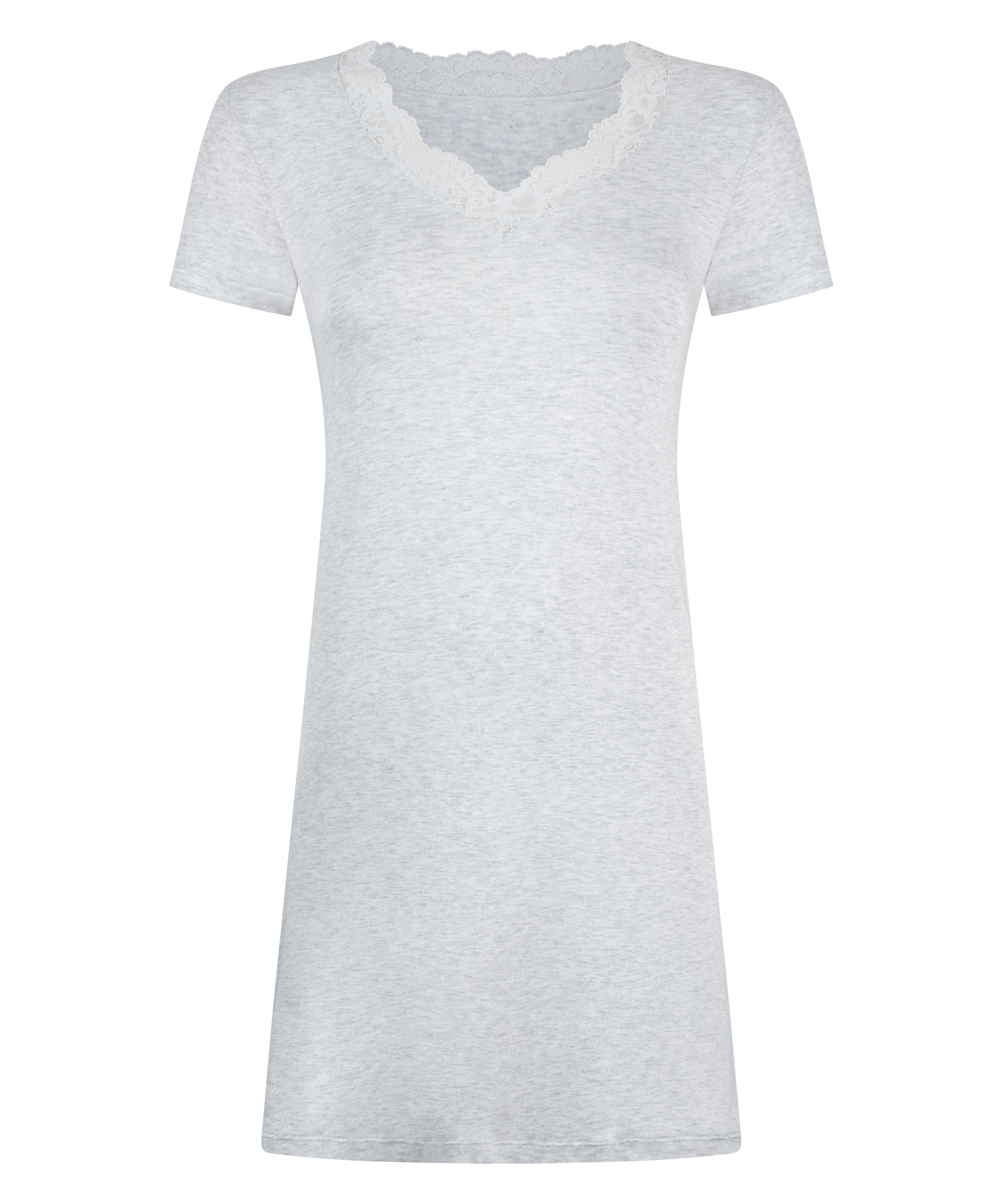 Sovne med stil i denne nattskjorten, en perfekt blanding av komfort og eleganse. Laget av mykt, pustende jerseystoff, sørger denne nattskjorten en avslappet passform som føles lett og behagelig mot huden. Den flatterende V-halsen er pyntet med blonder, og gir dette klassiske designet et snev av femininitet.