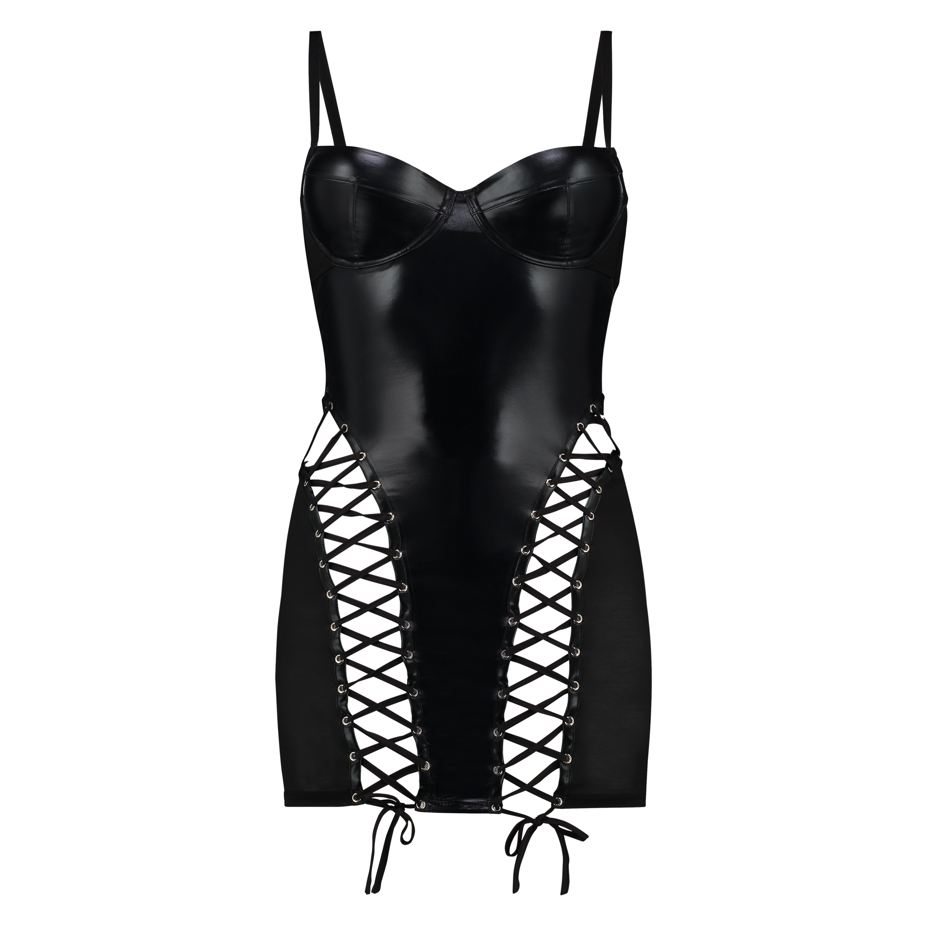 Denne underkjolen er utrolig sexy med detaljer som spagettistropper og netting! Underkjolen gir inntrykk av kunstlær og er en del av den sexy Private-kolleksjonen!
