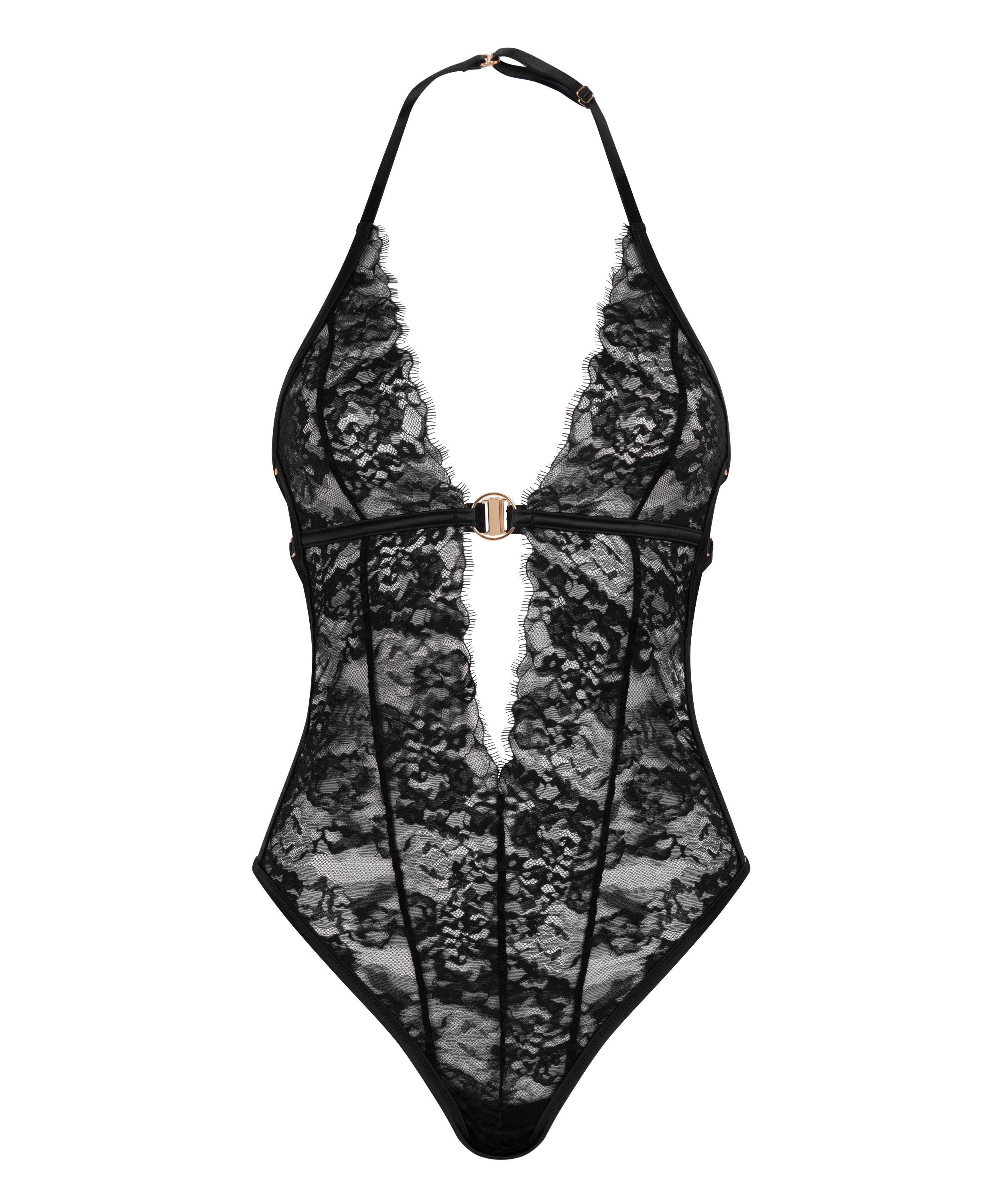 Denne heldekkende blondebodyen er designet for å være fengslende fra alle vinkler. Laget utelukkende av blonder, følger den kurvene dine med en passform som føles som et andre hudlag. Ringen foran trekker til seg blikk og har et snev av glitter. Del av vår Private-kolleksjon.