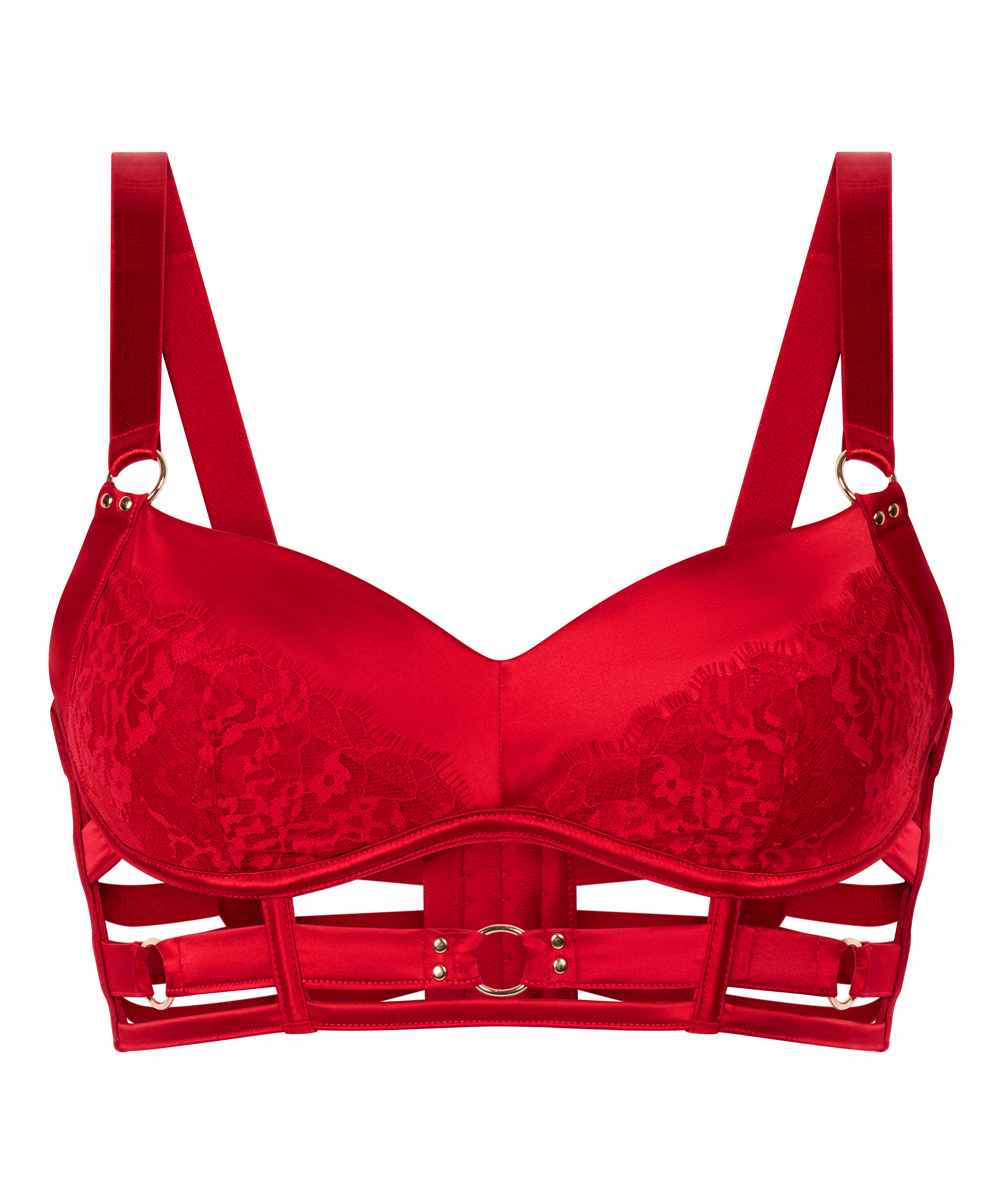 Mykt møter slående i vår bralette – designet for komfort. Denne braletten har polstrede kopper som gir myk form og støtte, mens blonder pryder bunnen av hver kopp og gir et romantisk preg. Utskjærte detaljer gir silhuetten et moderne preg, noe som gjør den perfekt til lag-på-lag-stilen eller som et statement-plagg. Kombiner med den matchende underdelen for en komplett look.