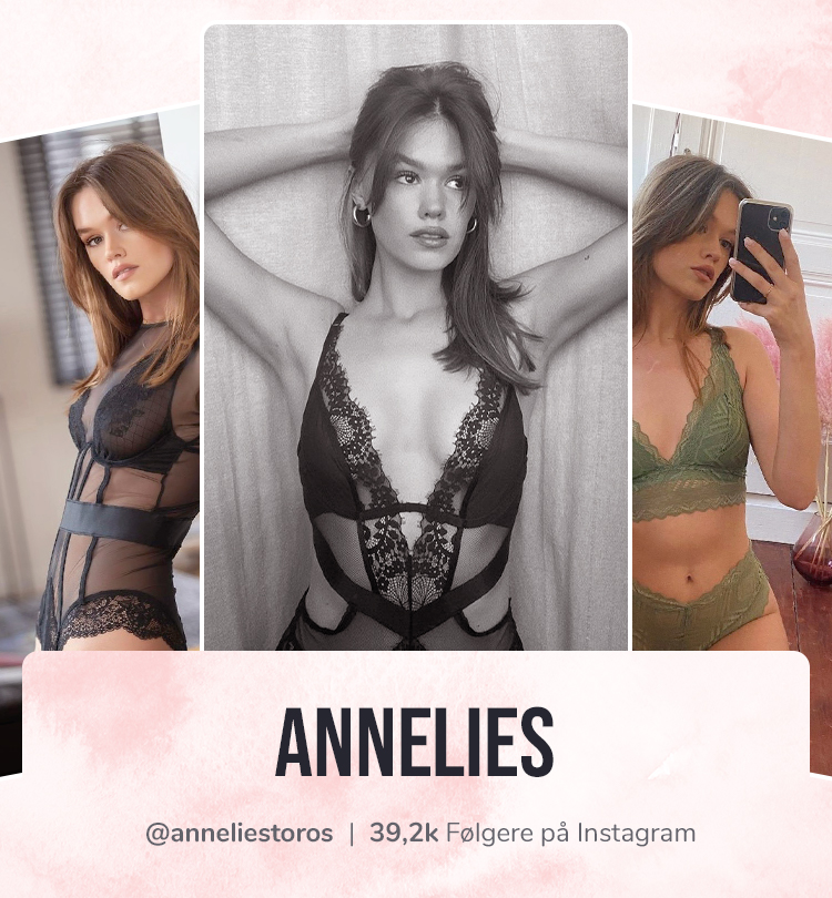 Annelies er en av våre belgiske ambassadører. Hun beskriver stilen sin som moteriktig men sexy. Hun liker sett men også bodyer, og favorittsettet er svart med blonder!