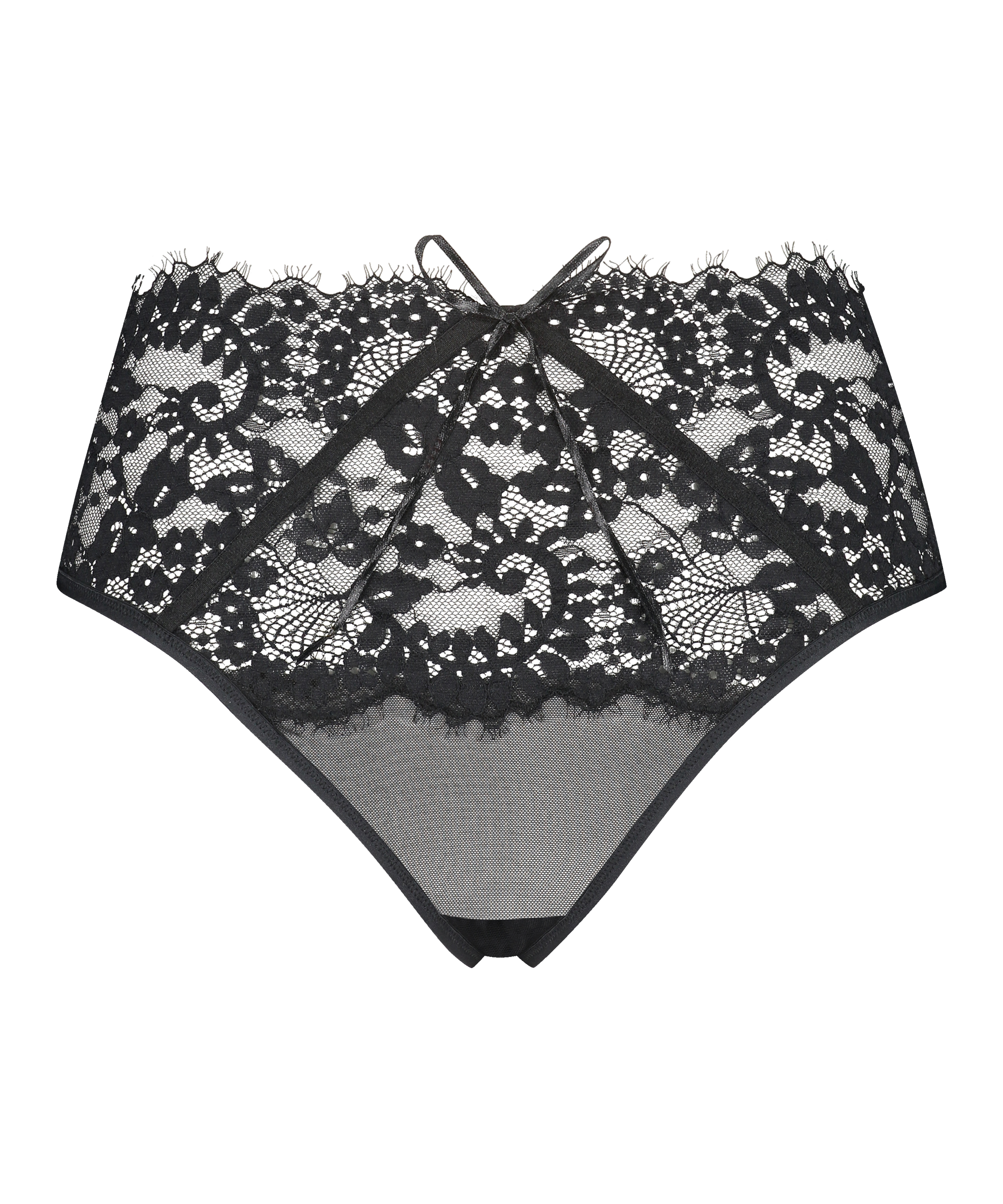 Føl deg selvsikker i denne vakre g-strengen! G-strengen sitter litt høyere, noe som gjør den veldig behagelig. Denne g-strengen er laget av blonder og mesh, og mesh-stoffet er elastisk. Foran er det en sløyfe. Kombiner denne g-strengen med den matchende braletten for å gjøre settet komplett! En del av Curvy-kolleksjonen vår.