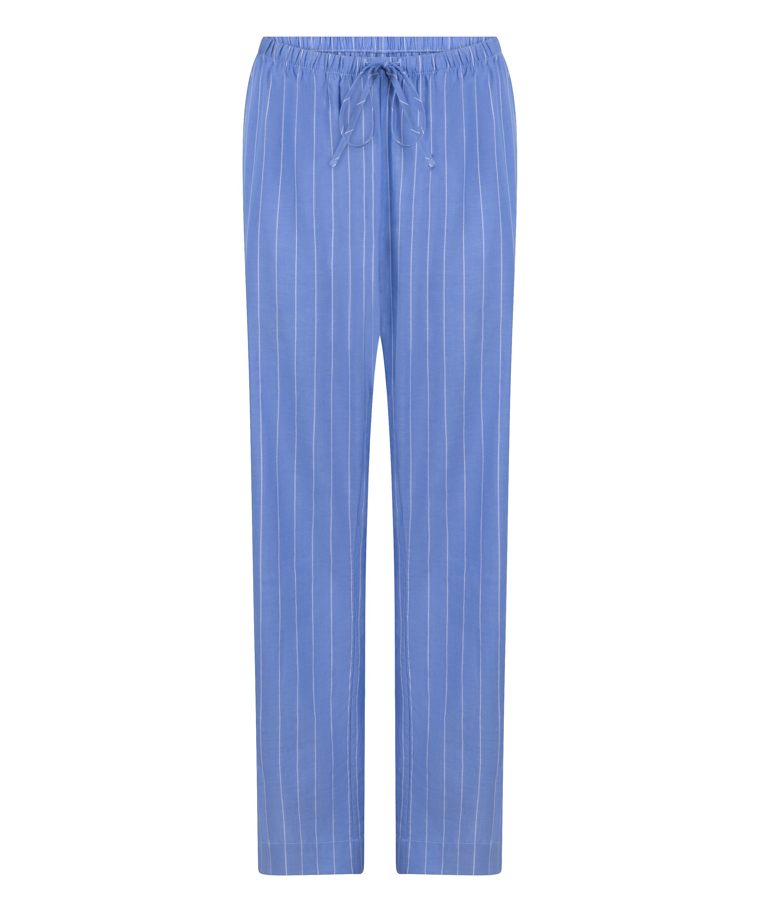 Smyg deg inn i komfort med disse stripete pyjamasbuksene i bomull, laget for drømmende netter og late morgener. Laget av myk, pustende bomull, med avslappet passform og elastisk midje for maksimal komfort. Det lekne stripemønsteret tilfører et snev av moro til nattøyet ditt, og gjør dem perfekte for stilfull avslapning. Perfekt for de som elsker komfortabelt loungeantrekk, søte pyjamaser og bomullsnattøy. Kombiner med den matchende jakken!