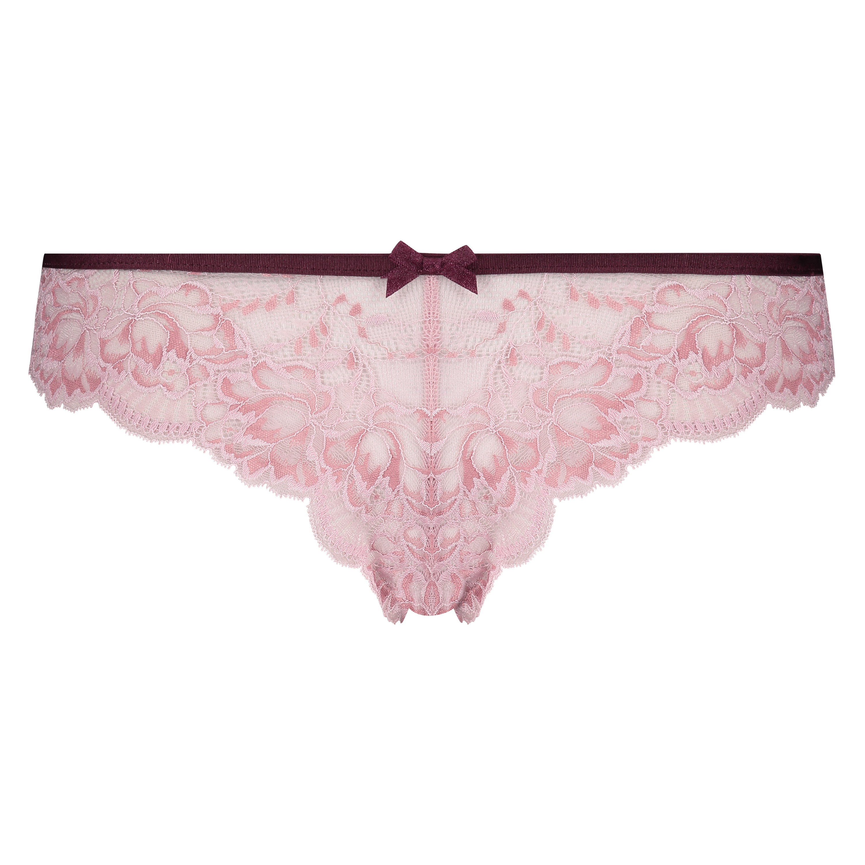 You'll feel very feminine in these Brazilian knickers made from semi-transparent lace and finished with a small bow in the middle.