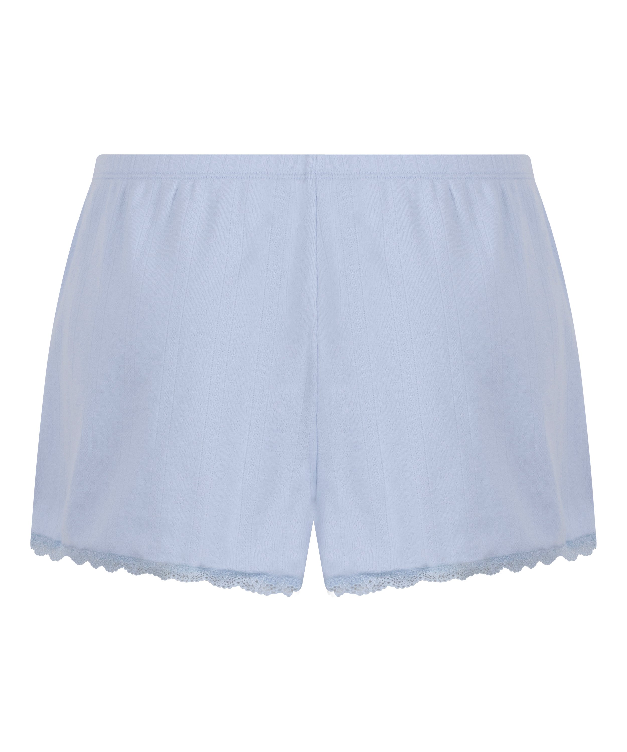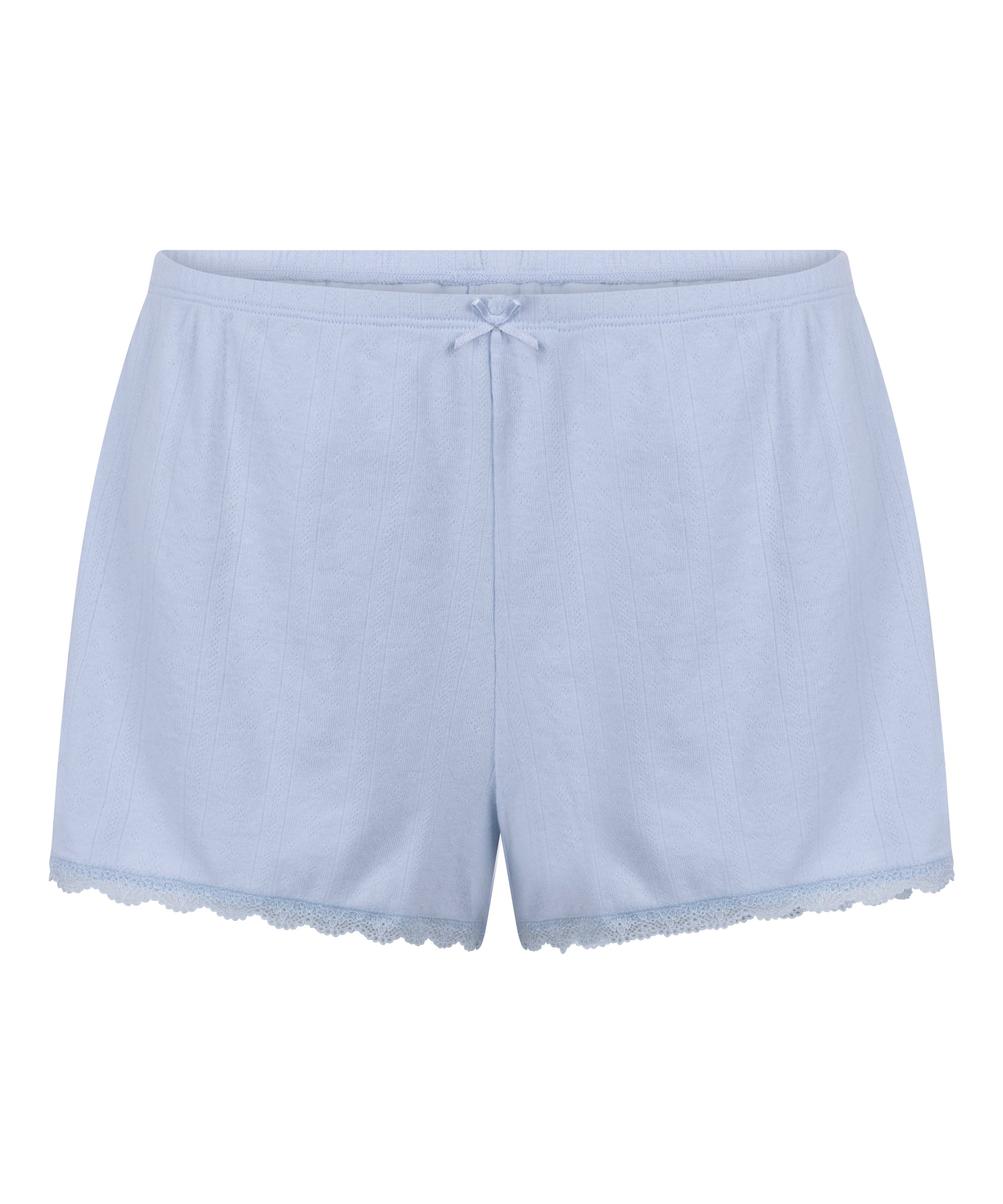 Hold deg komfortabel og stilig med shortsene våre. Disse shortsen er laget av mykt pointelle-stoff og har et strukturert mønster som gir et ekstra touch til fritidsklærne dine. Snøredetaljer løfter looken, mens den elastiske linningen sørger for en sikker og behagelig passform.