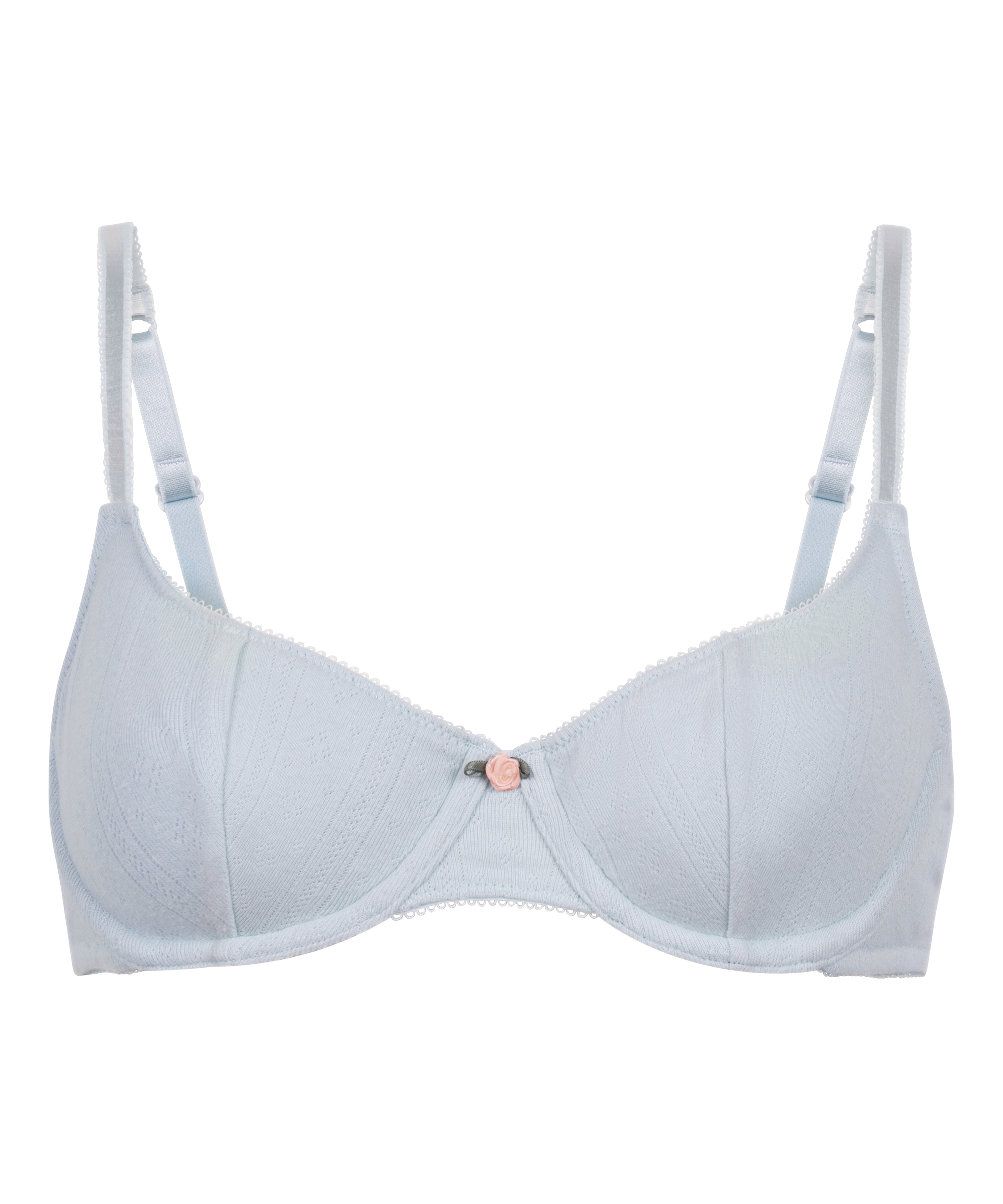 Denne søte og romantiske BH-en kombinerer tidløs stil med hverdagskomfort. Den er laget av pointelle-stoff og har et strukturert mønster som føles lett mot huden. De ikke-vatterte skålene gir en naturlig form, mens bøylene gir skånsom støtte gjennom hele dagen. Kombiner med den matchende underdelen for en komplett look.