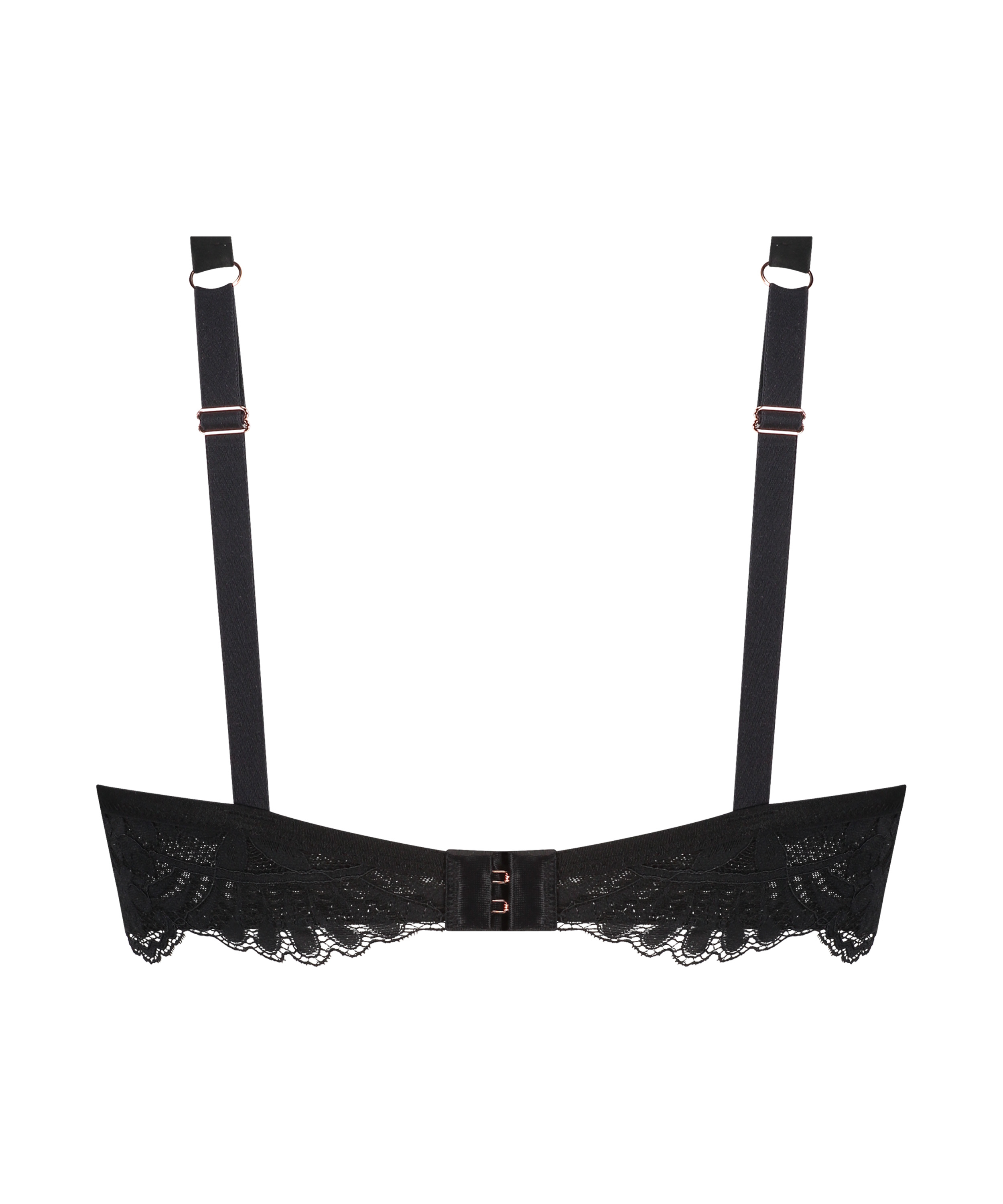 Kjenn deg hjemme i denne behåen! Med masse romantiske blonder på de polstrede koppene, og stroppene er dekorert med søte sløyfer. Kombiner den med matchende truser! En del av Noir-kolleksjonen.