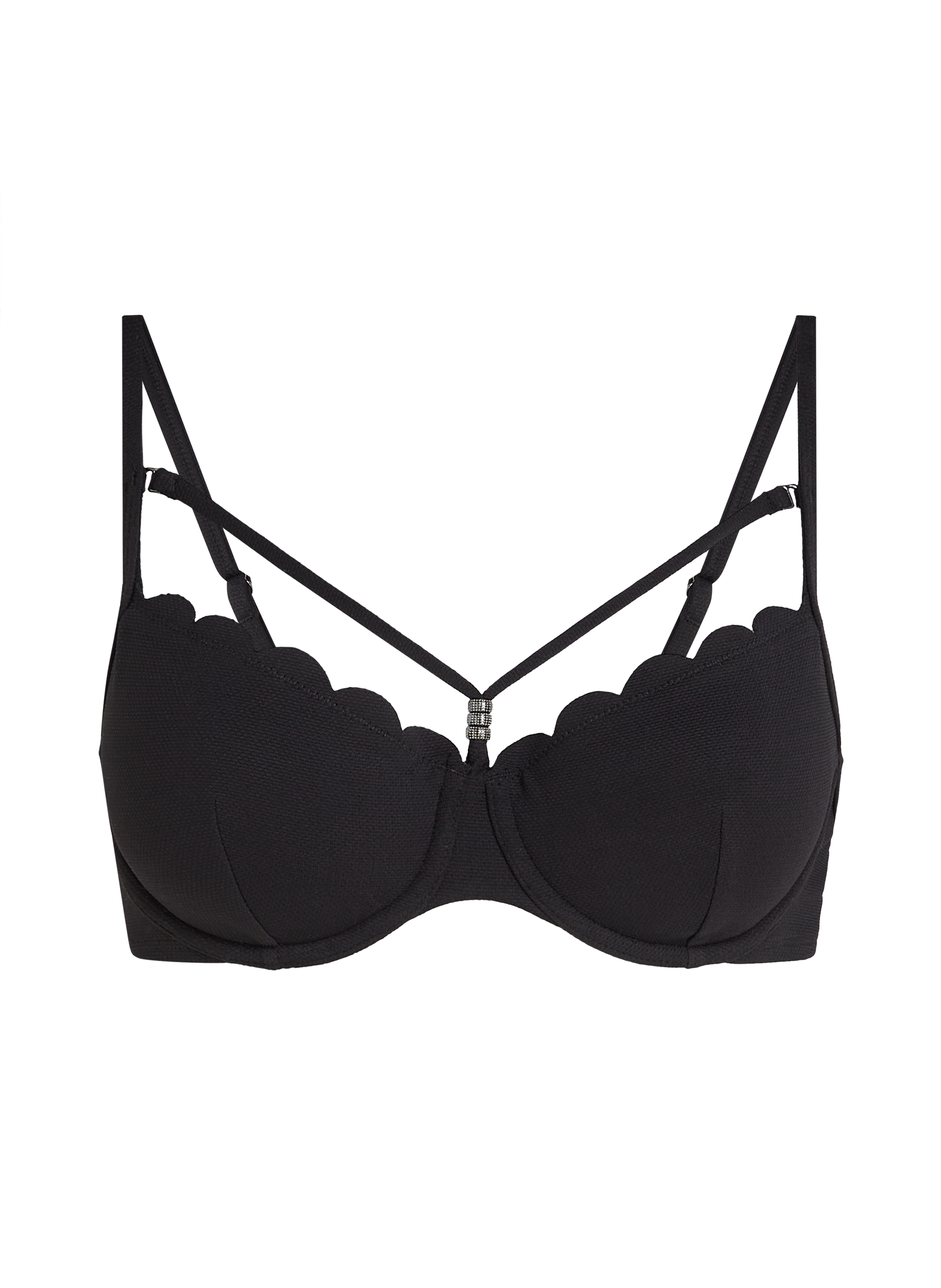 Føl deg selvsikker i denne vakre bikinitoppen! Denne overdelen har en morsom bølgekant, og skulderstroppene er justerbare. Kombiner bikinitoppen med en matchende bikiniunderdel for å få et komplett sett! Våre badetøy er utviklet med stoffer og fôr av høy kvalitet for å gi en støttende passform. Ønsker du en mer avslappet passform, anbefaler vi å gå opp én størrelse.