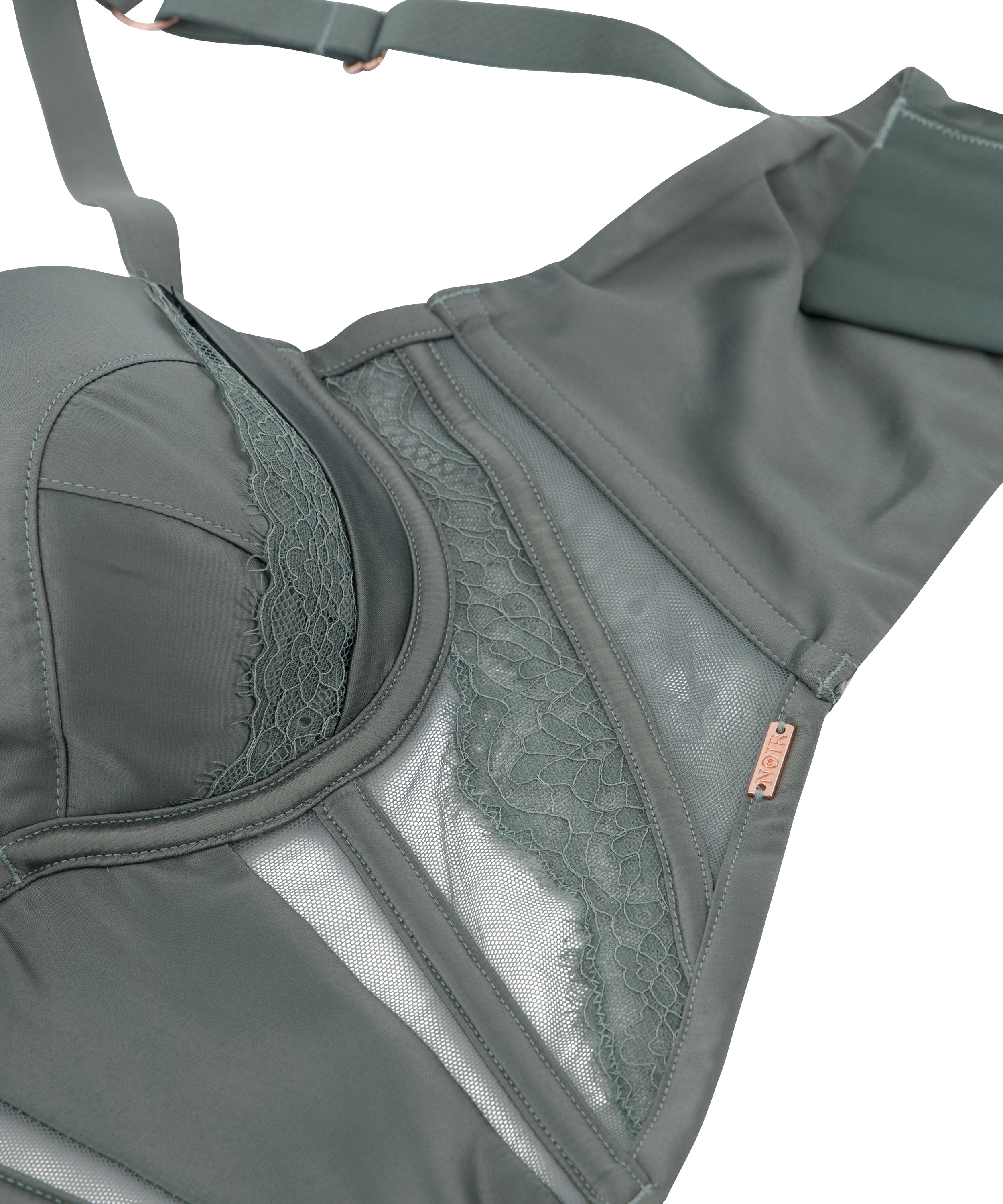Denne BH-en er nydelig, eller hva? Den har flotte blonder og nettingdetaljer, med bøyle og polstring for optimal komfort. BH-en har dessuten longline-stil. Kombiner med matchende plagg for en gjennomført look. Del av Noir-kolleksjonen vår.