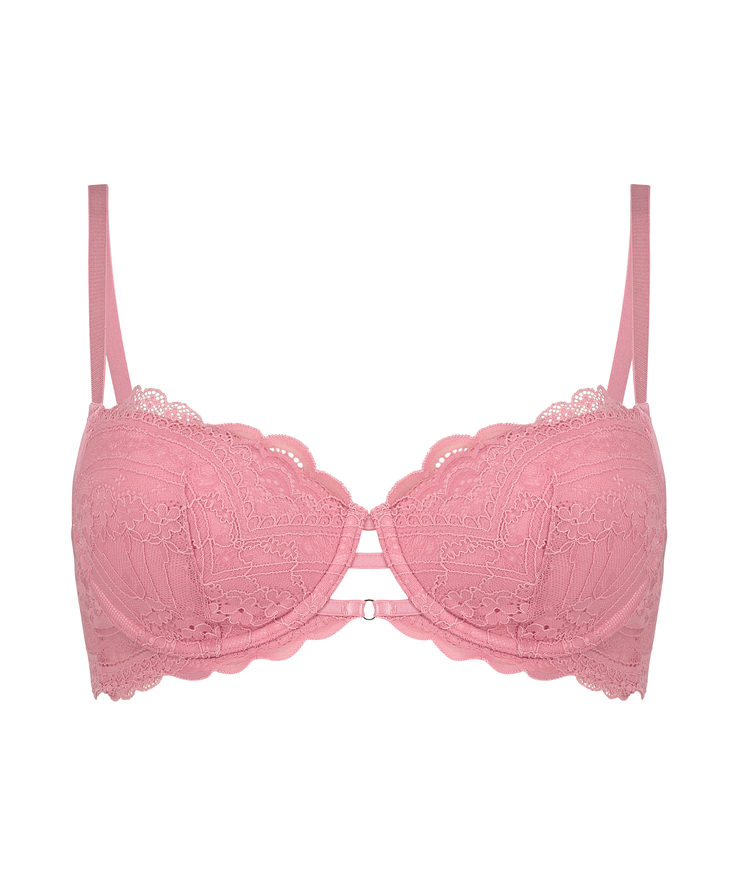 Se og føl deg fantastisk i denne polstrede BH-en! Med mye blondepynt over kopper og bånd. Mellom brystene er det sexy stroppedetaljer for å legge til utseendet. Bruk sammen med de matchende trusene! For denne serien endrer vi måten vi lager undertøyet vårt på. Blondene er naturlig farget ved hjelp av en kjemisk fri prosess. Det kan være en liten fargevariasjon mellom partiene, noe som betyr at hvert stykke er unikt. På grunn av sin naturlige opprinnelse kan fargen falme over tid og med bruk. Hånd- eller maskinvask i kaldt vann med lignende farger. Opprettelsen av Wies-kolleksjonen er en del av vår ambisjon om å jobbe mer bevisst med miljøet. Det er en del av en reise vi er på mot en grønnere måte å jobbe på. Denne reisen har vi kalt "Together Tomorrow", der vi bygger mot en mer bærekraftig merkevare. Vi vil gjerne at du blir med oss på reisen. Se mer om denne kolleksjonen og vår utvikling ved å klikke her .