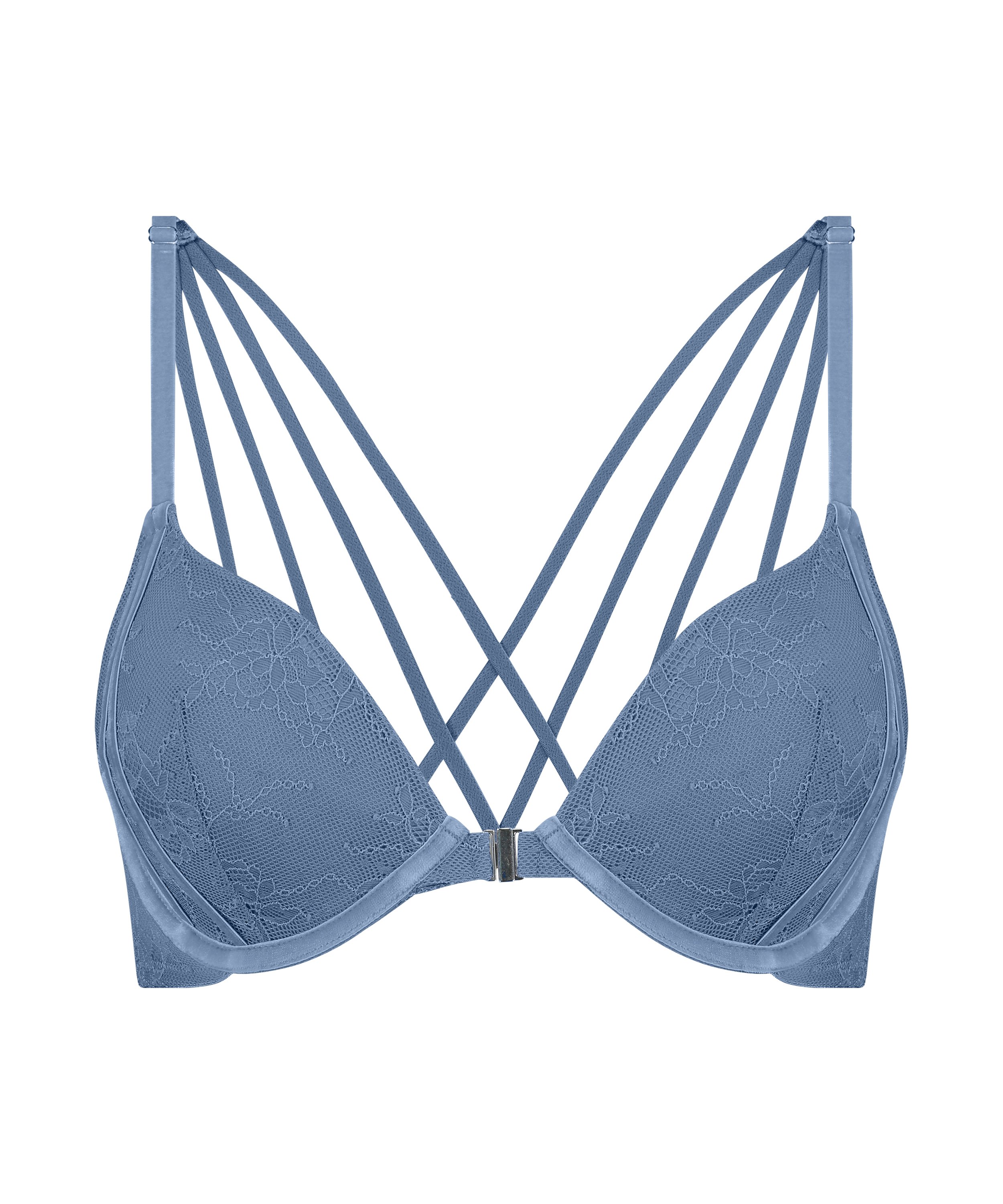 Føl deg fantastisk i denne fengslende push-up BH-en! Denne BH-en er designet for å være både praktisk og forlokkende, og har spenne foran og stropper i ryggen. Kupene har bøyler, ekstra polstring og et delikat blondebelegg som gir både støtte og et snev av romantikk. Gjør undertøyet ditt enda bedre ved å kombinere det med en matchende truse!