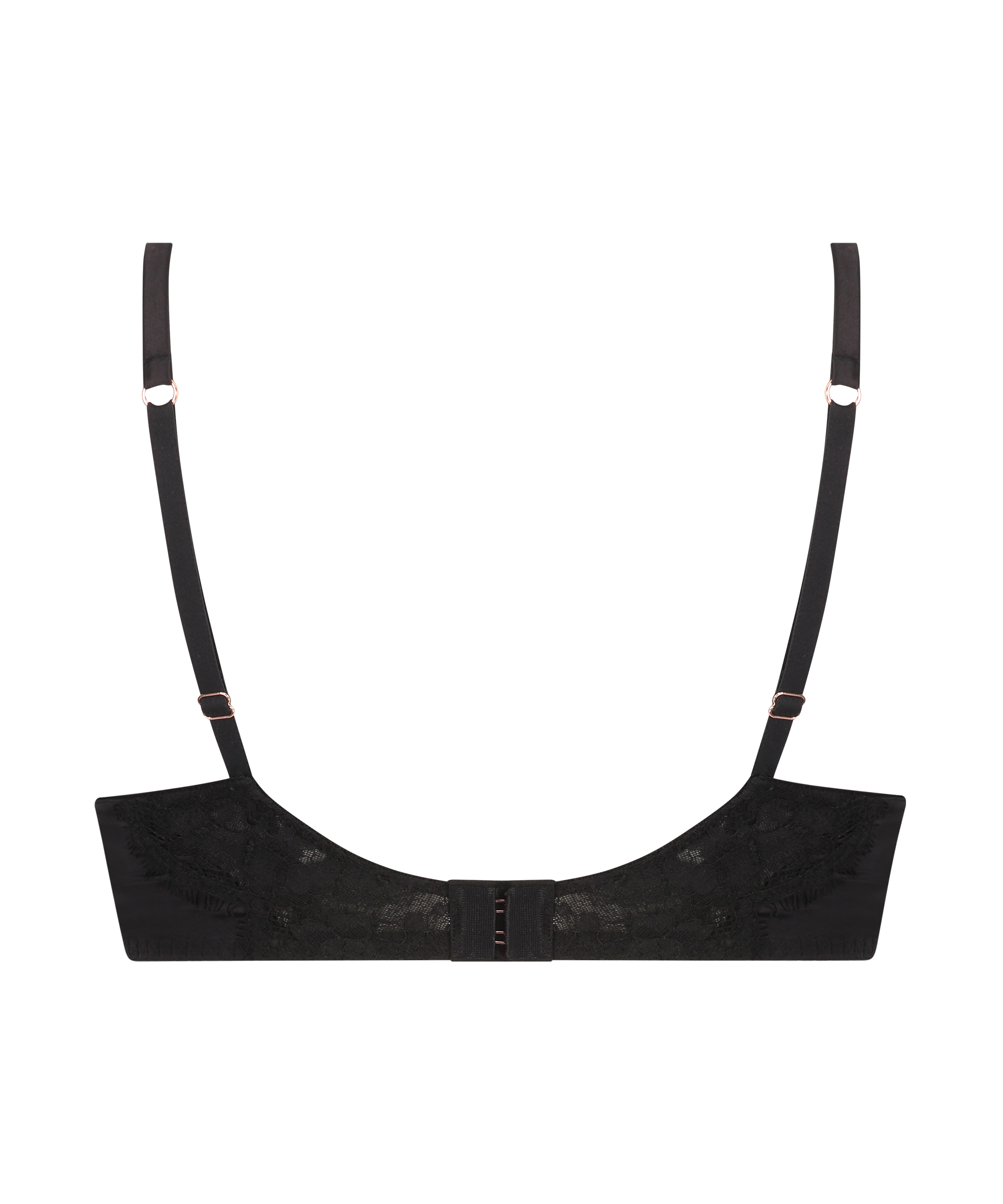 Vi har forelsket oss i denne praktfulle BH-en! BH-en har blondedetaljer og en sløyfe foran. Skulderbåndene er justerbare slik at de kan reguleres helt etter dine ønsker. Kombiner med matchende artikler fra Noir-kolleksjonen for å gjøre settet ditt komplett!