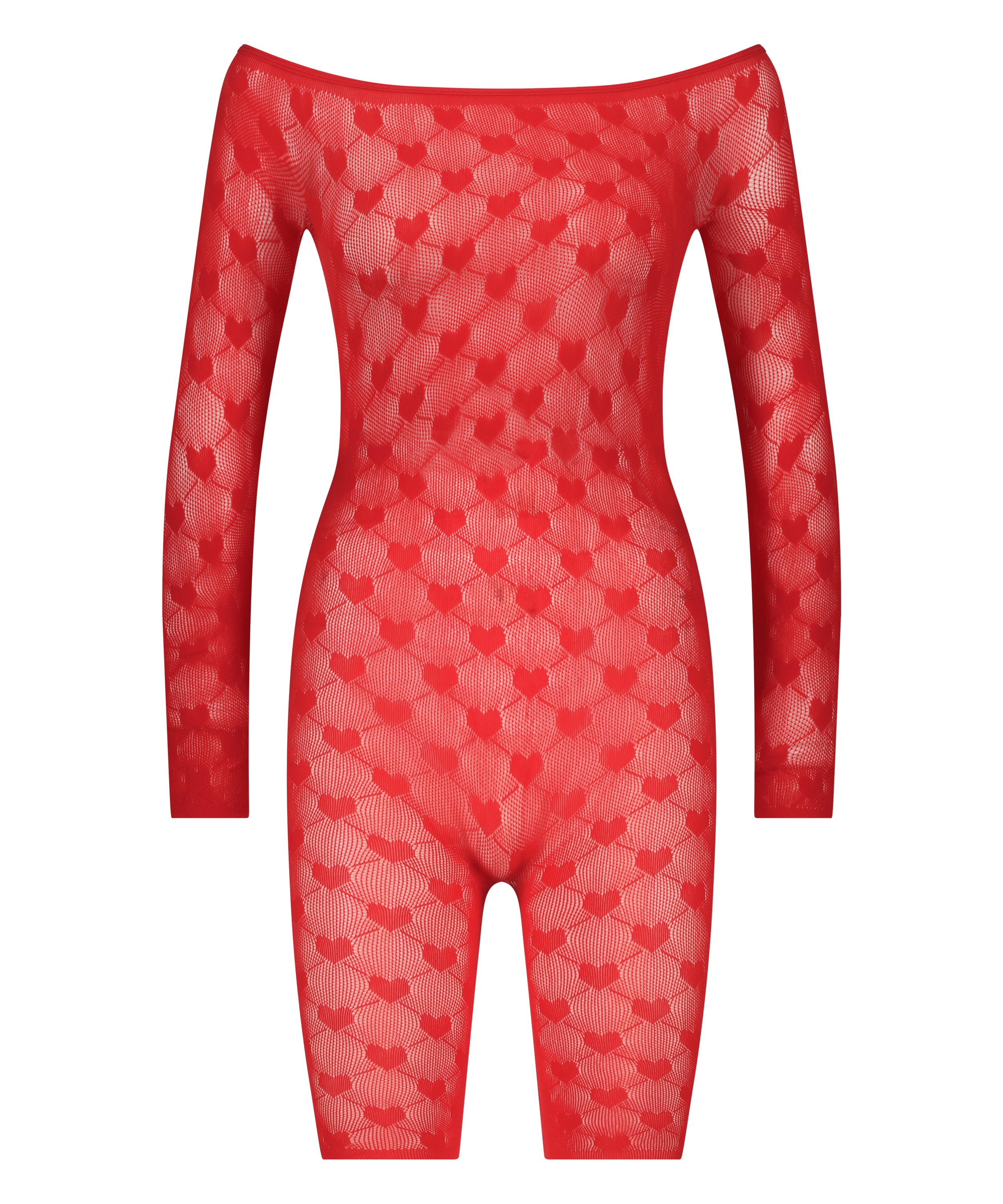 Føl deg romantisk i denne playsuiten med hjerter! En helt gjennomsiktig look med hjertebroderier over alt. Ekstra behagelig med de lange ermene og shortsen. Del av vår Private-kolleksjon.