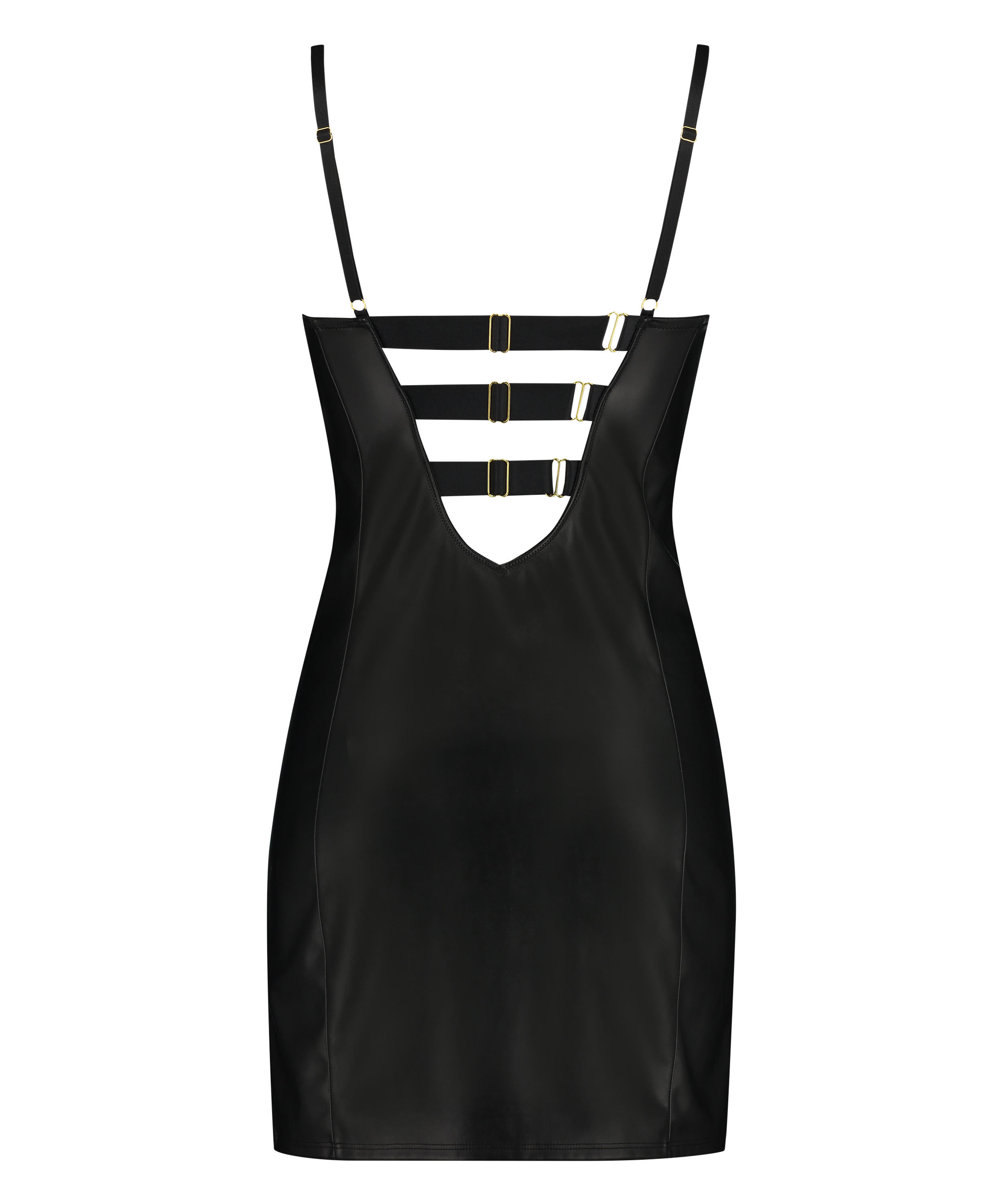 Gjør deg klar for en sexy kveld i denne pushup-slipkjolen med lærlook. Denne kjolen er en videreutvikling av vår bestselger Talia BH, forseggjort med glidelåser og blonder for å få en ekstra tøff og sexy touch! Kjolen kan åpnes med glidelås foran.
