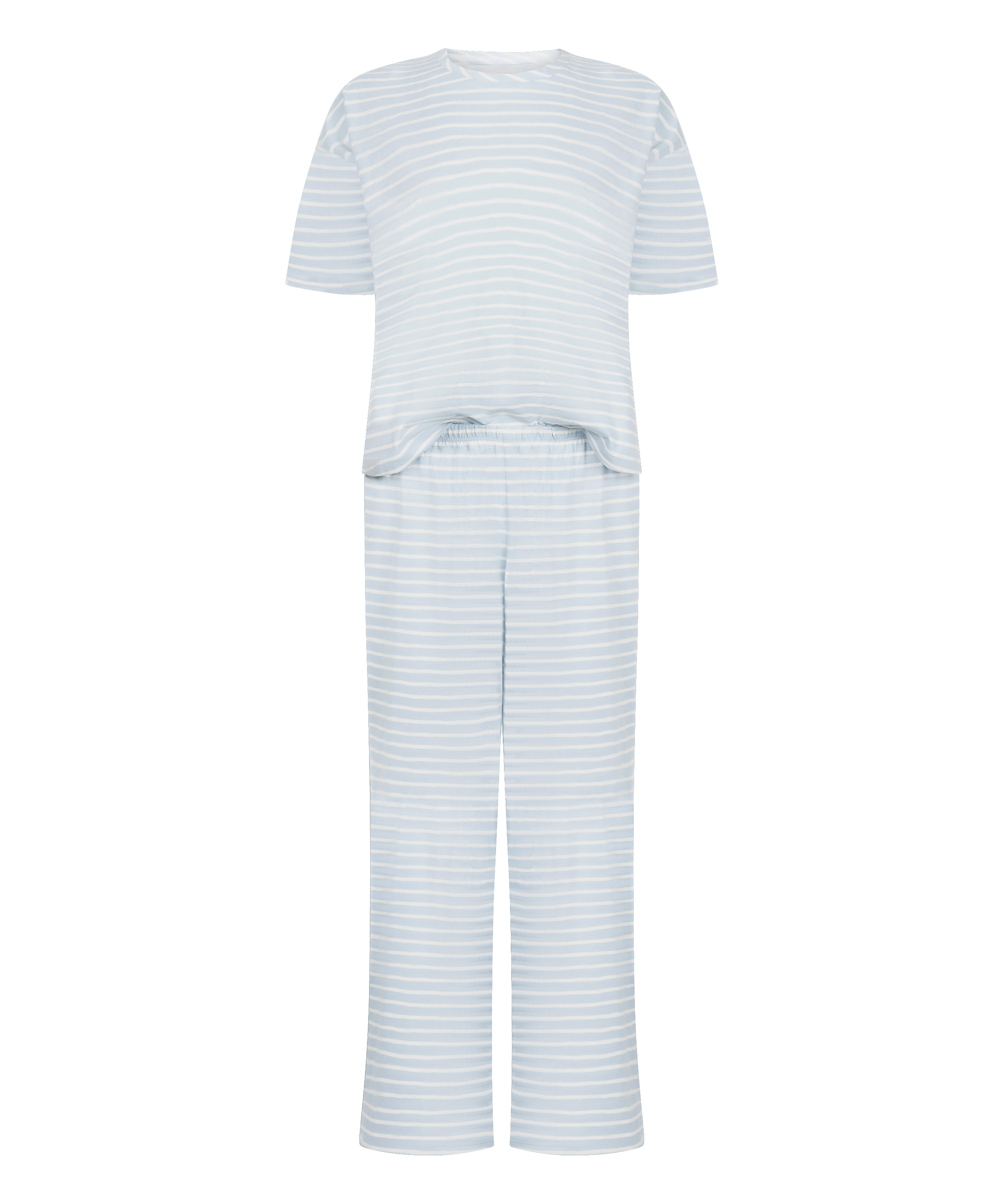 Sov godt og slapp av med stil i vårt pyjamasett i bomullsjersey. Laget av myk og pustende bomullsjersey, inkluderer settet en avslappet topp og lange bukser, designet for komfort hele natten.