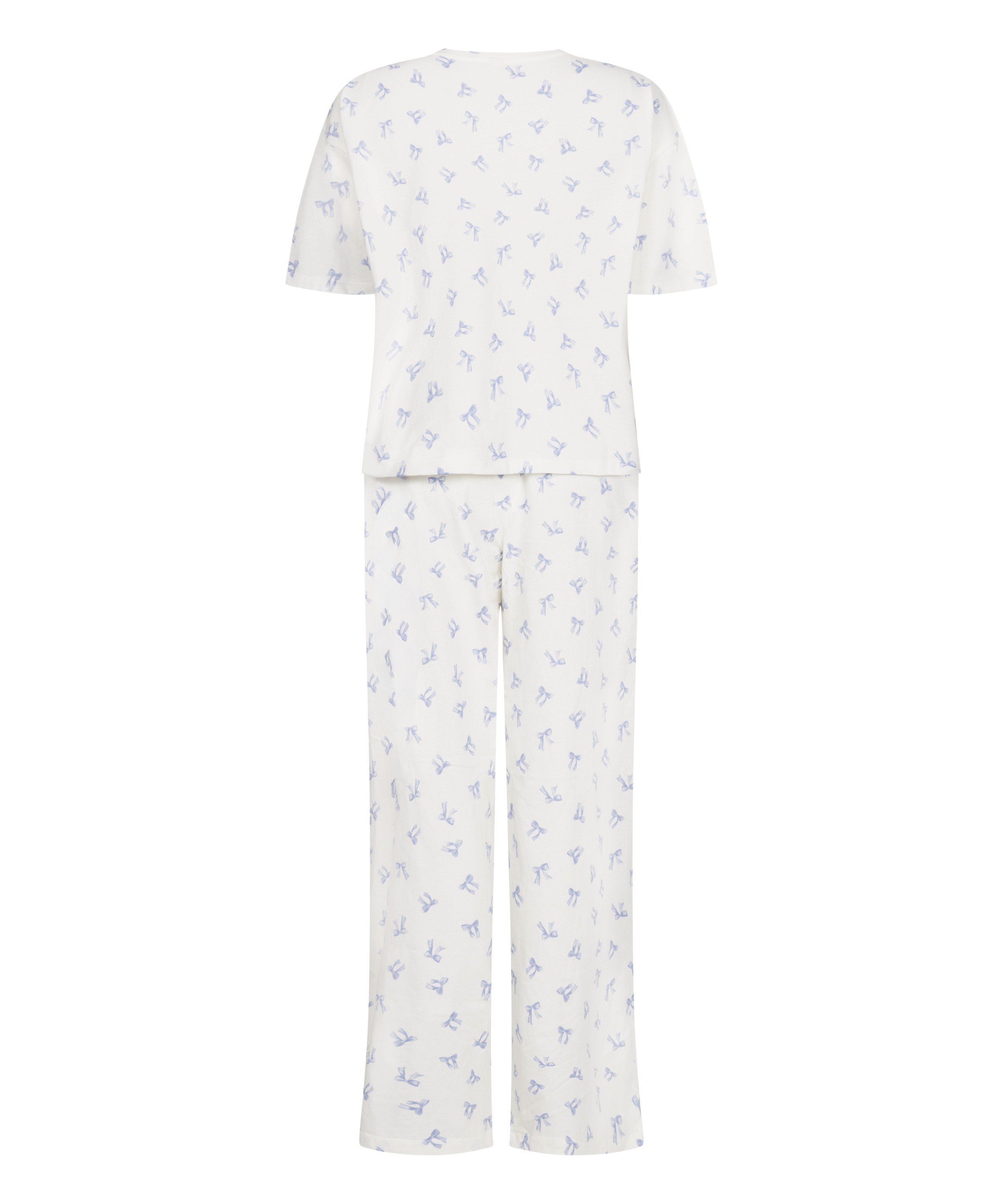 Sov godt og slapp av med stil i vårt pyjamasett i bomullsjersey. Laget av myk og pustende bomullsjersey, inkluderer settet en avslappet topp og lange bukser, designet for komfort hele natten.