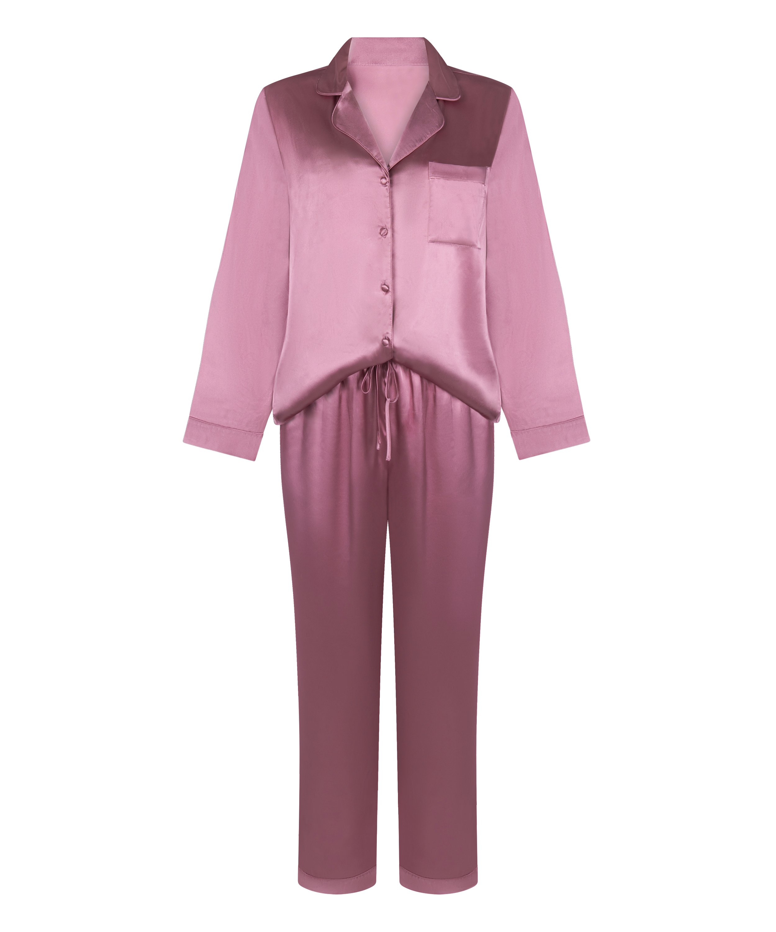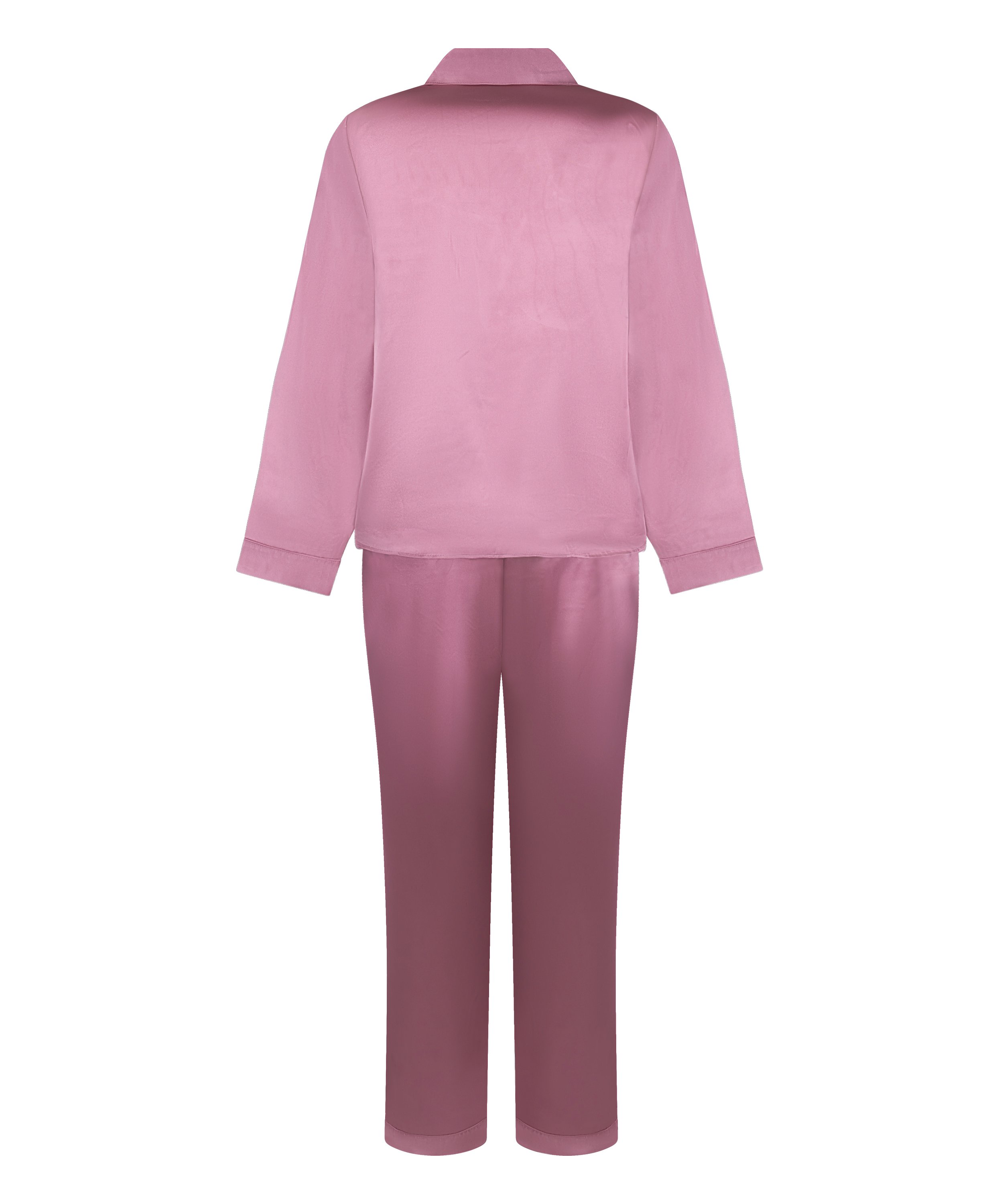 Drømmer du om eleganse? Ta på deg dette pysjamassettet i sateng, med en myk jersey-skjorte med knapper og vide bukser med vid ben. Den elastiske linningen sørger for komfort hele natten, mens den blanke satengfinishen gir et glamorøst preg. Dette settet er perfekt for koselige kvelder eller overnattinger med jentene, og kombinerer stil og mykhet på en naturlig måte. Kombiner det med favorittundertøyssettet ditt! Din nye favorittlook til sengetid er bare et klikk unna!