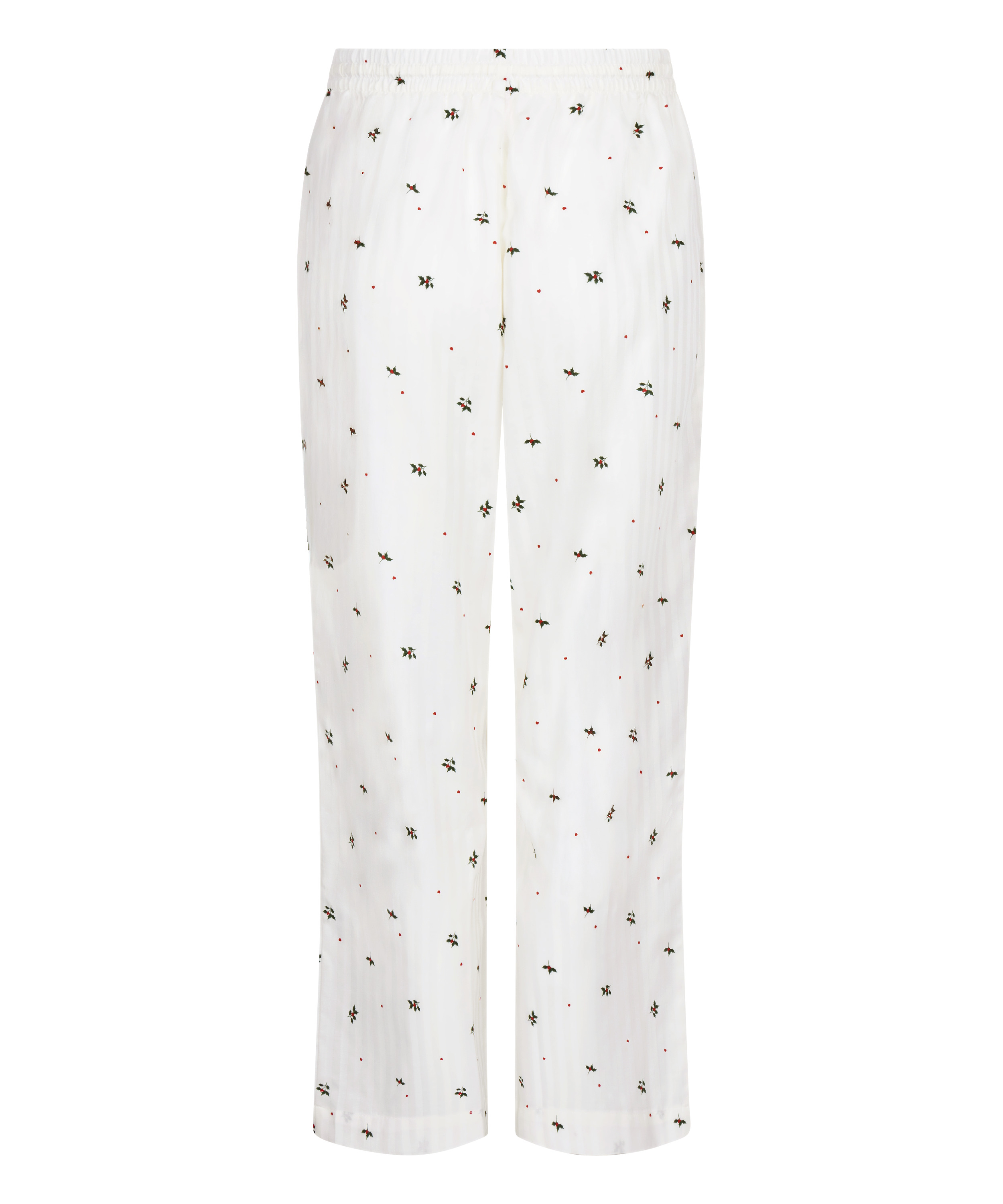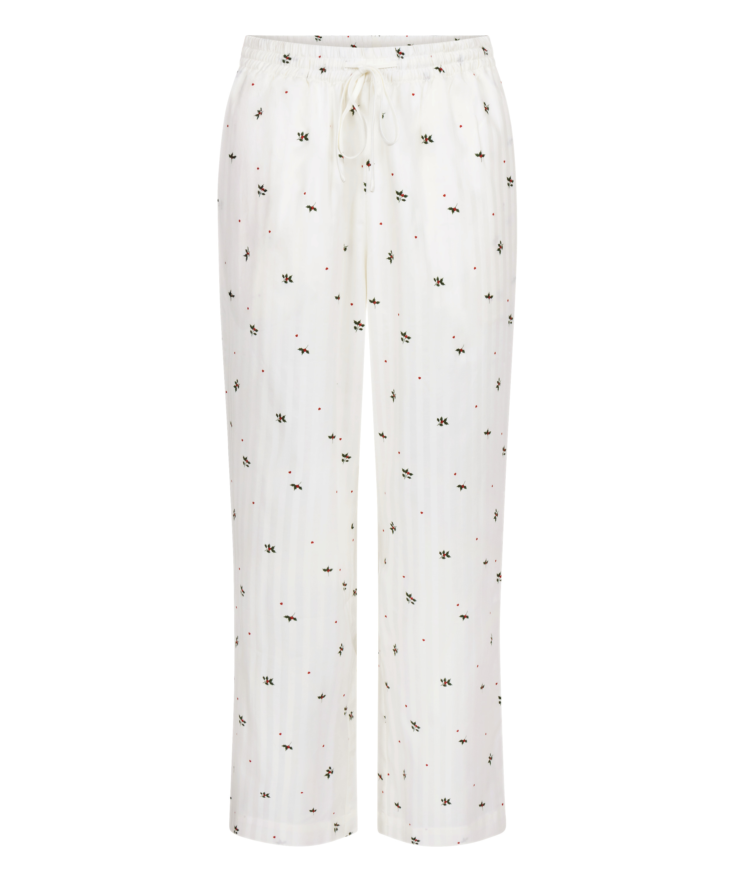 Kom i feststemning med disse koselige fleece-pyjamasbuksene med et sjarmerende misteltein-trykk. De er laget av ultramyk fleece og er perfekte for å kose seg i på kalde kvelder eller nyte avslappede feriemorgner. Den elastiske linningen og den avslappede passformen sikrer komfort hele natten med et muntert sesongpreget preg.