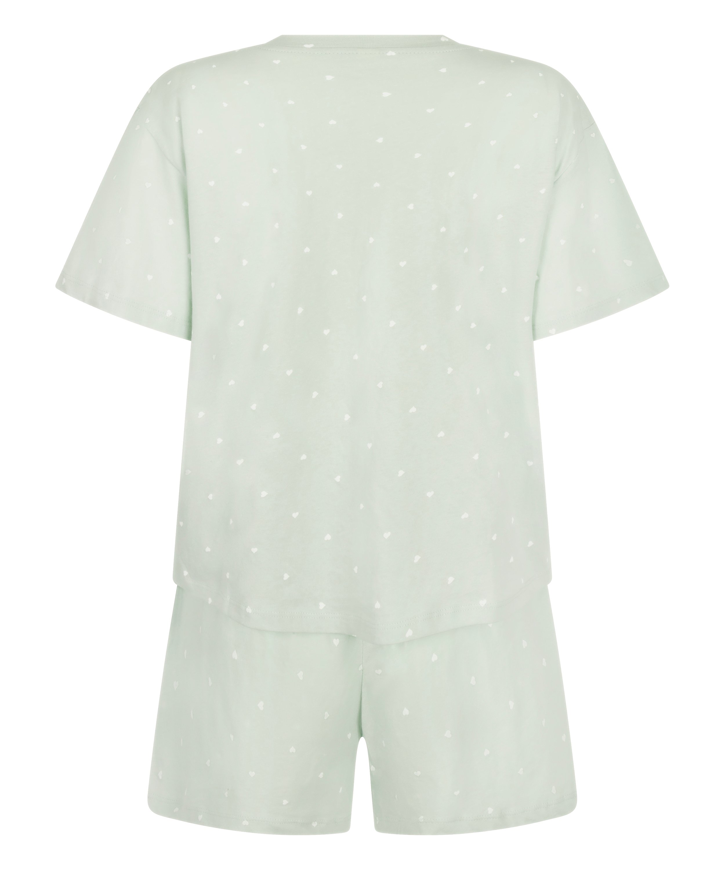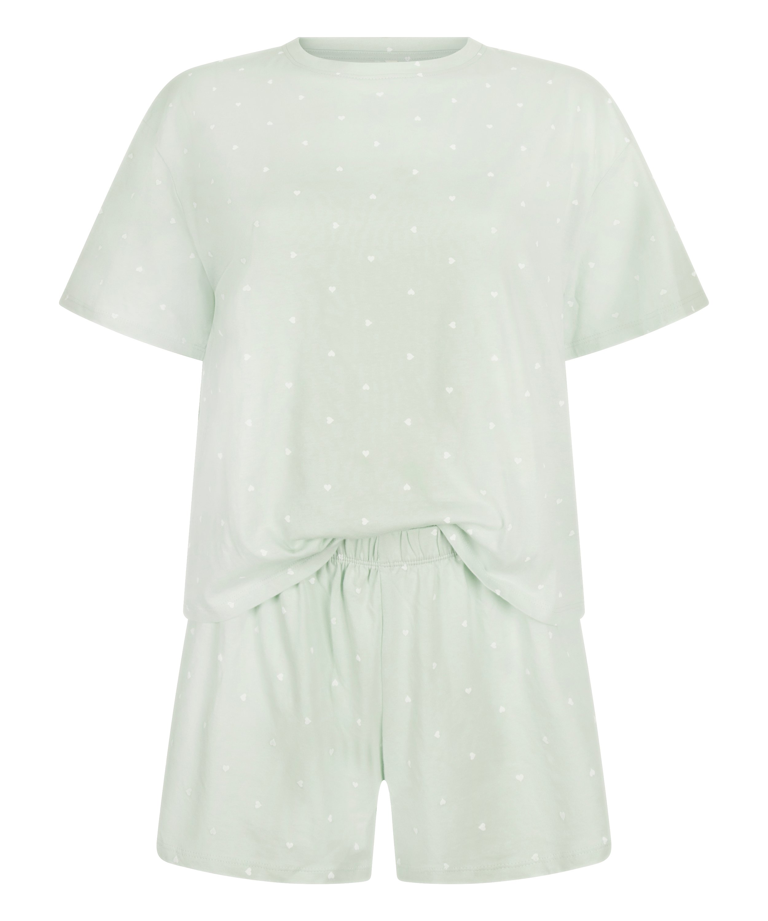 Hold det kjølig og komfortabelt med dette pyjamasettet i bomull. Inkluderer en avslappet T-skjorte med korte ermer og matchende shorts, begge med en vid passform for optimal komfort. Laget av bomull, føles settet lett mot huden og passer perfekt til varme netter eller avslapning. Den elastiske linningen på shortsen gir en fleksibel og behagelig passform.