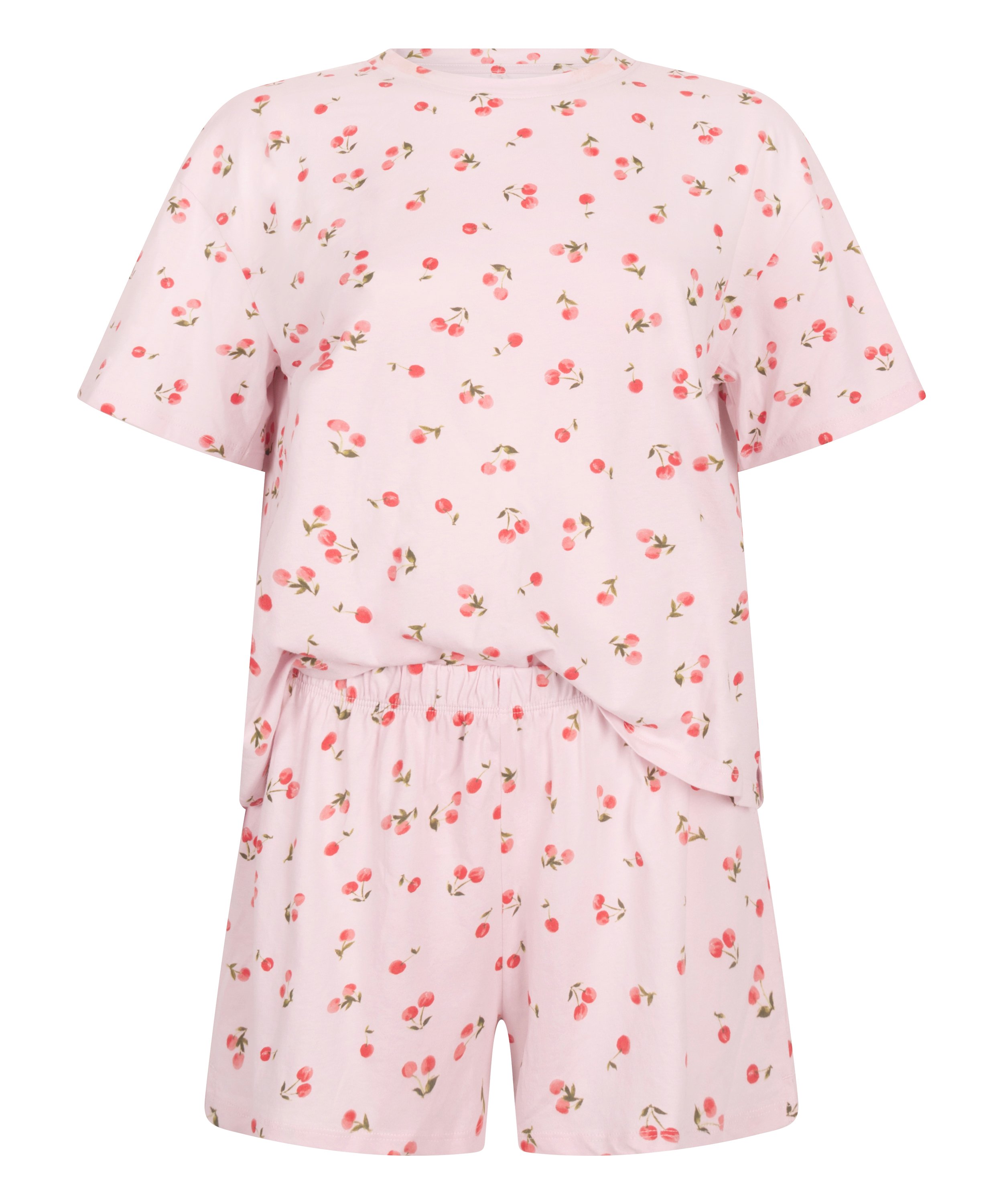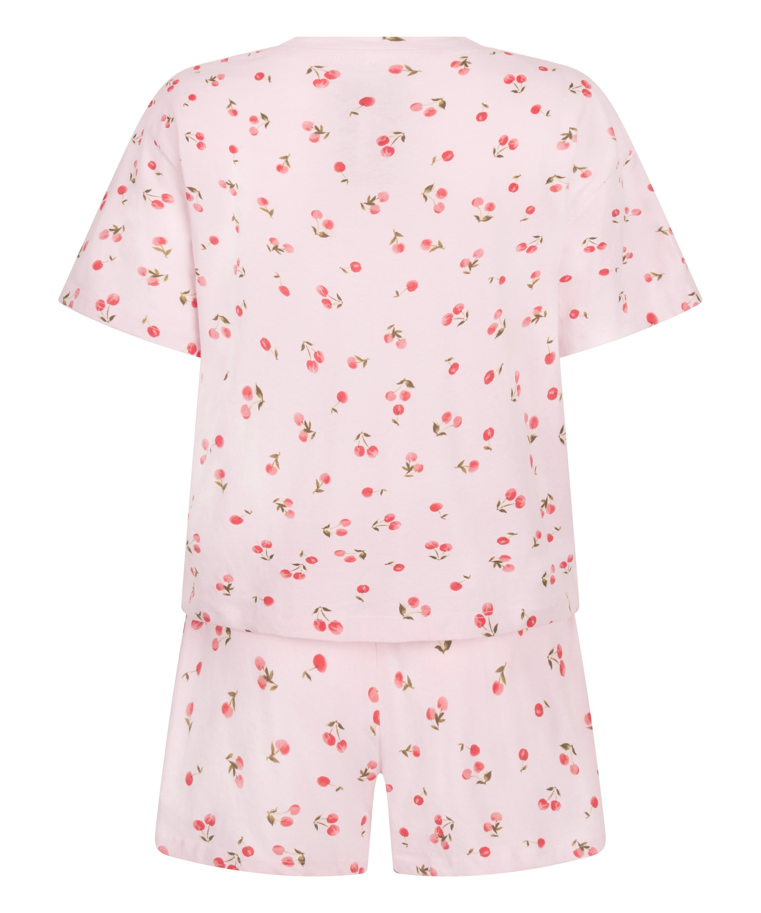 Hold det kjølig og komfortabelt med dette pyjamasettet i bomull. Inkluderer en avslappet T-skjorte med korte ermer og matchende shorts, begge med en vid passform for optimal komfort. Laget av bomull, føles settet lett mot huden og passer perfekt til varme netter eller avslapning. Den elastiske linningen på shortsen gir en fleksibel og behagelig passform.