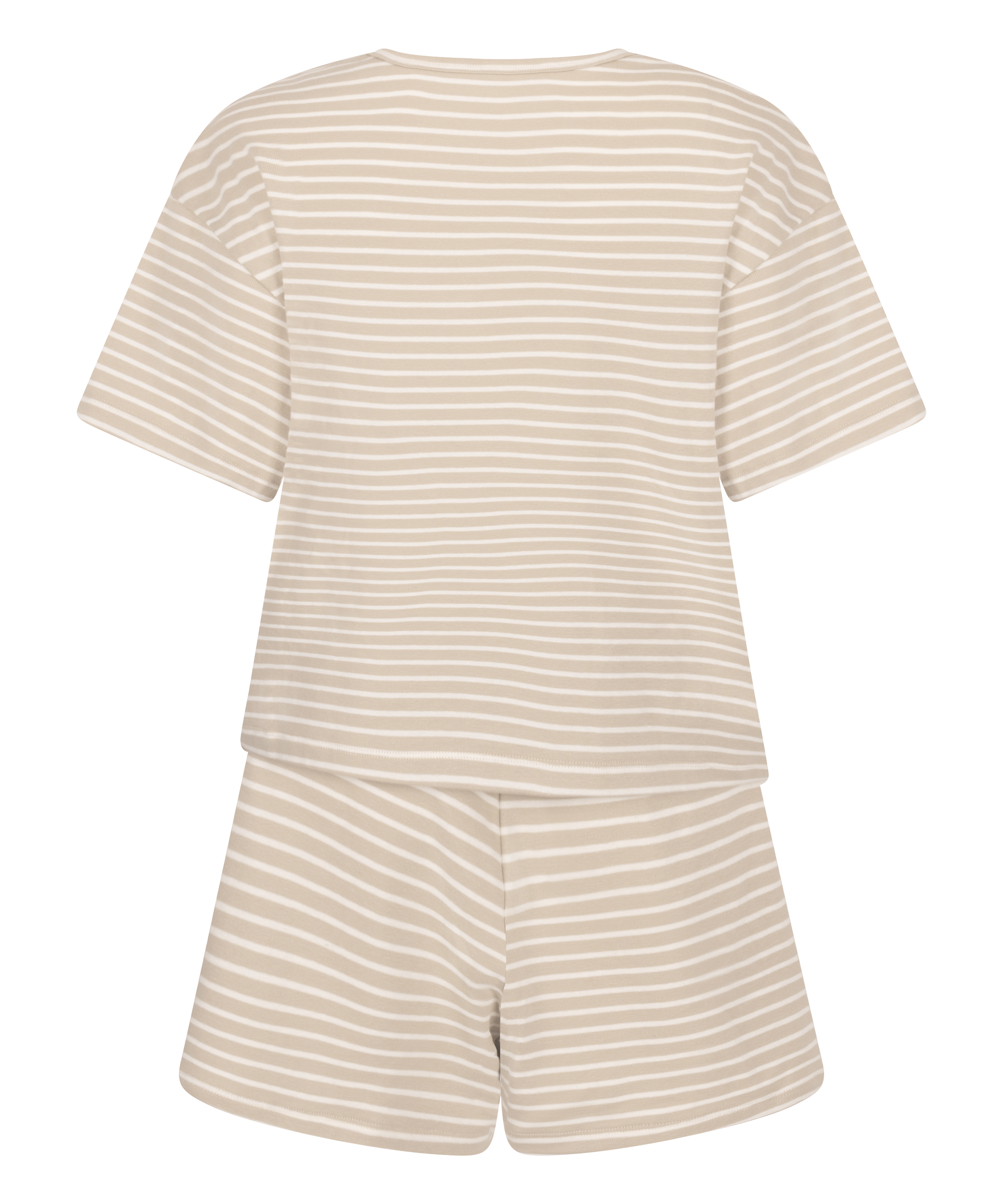 Slapp av i komfort og stil med dette koselige pyjamasettet. Inneholder en shorts og en matchende T-skjorte med korte ermer. Laget av jerseystoff og designet for å bevege seg med deg – perfekt for en god natts søvn eller avslapning. Den avslappede passformen gjør det til en favoritt på varme netter – et must-have i nattøysskuffen din.