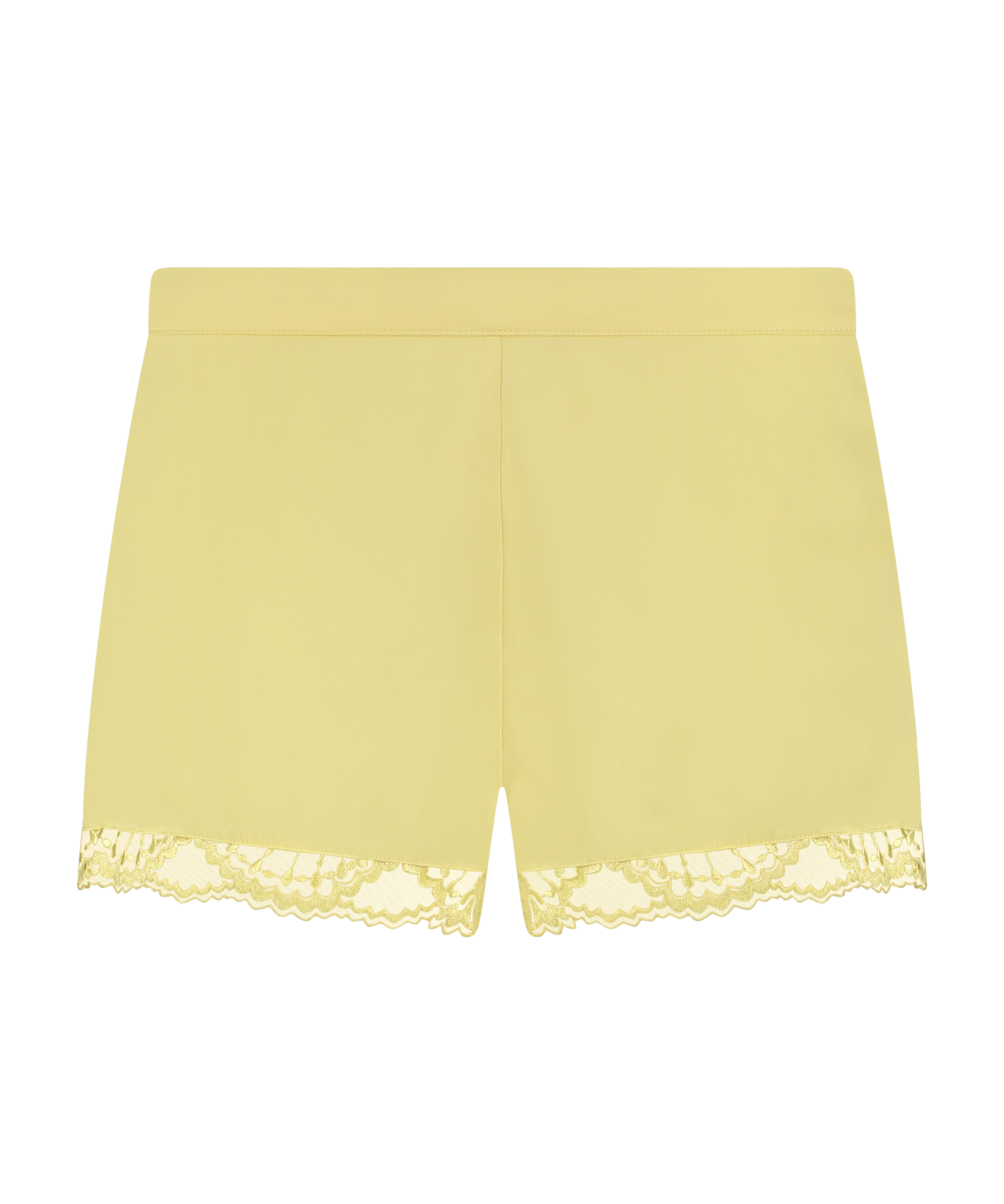 Disse pyjamasshortsene har et sateng-utseende og følelse. Den har en elastisk midje og en stropp å knyte. Kombiner med den matchende toppen for et søtt pysjamassett.