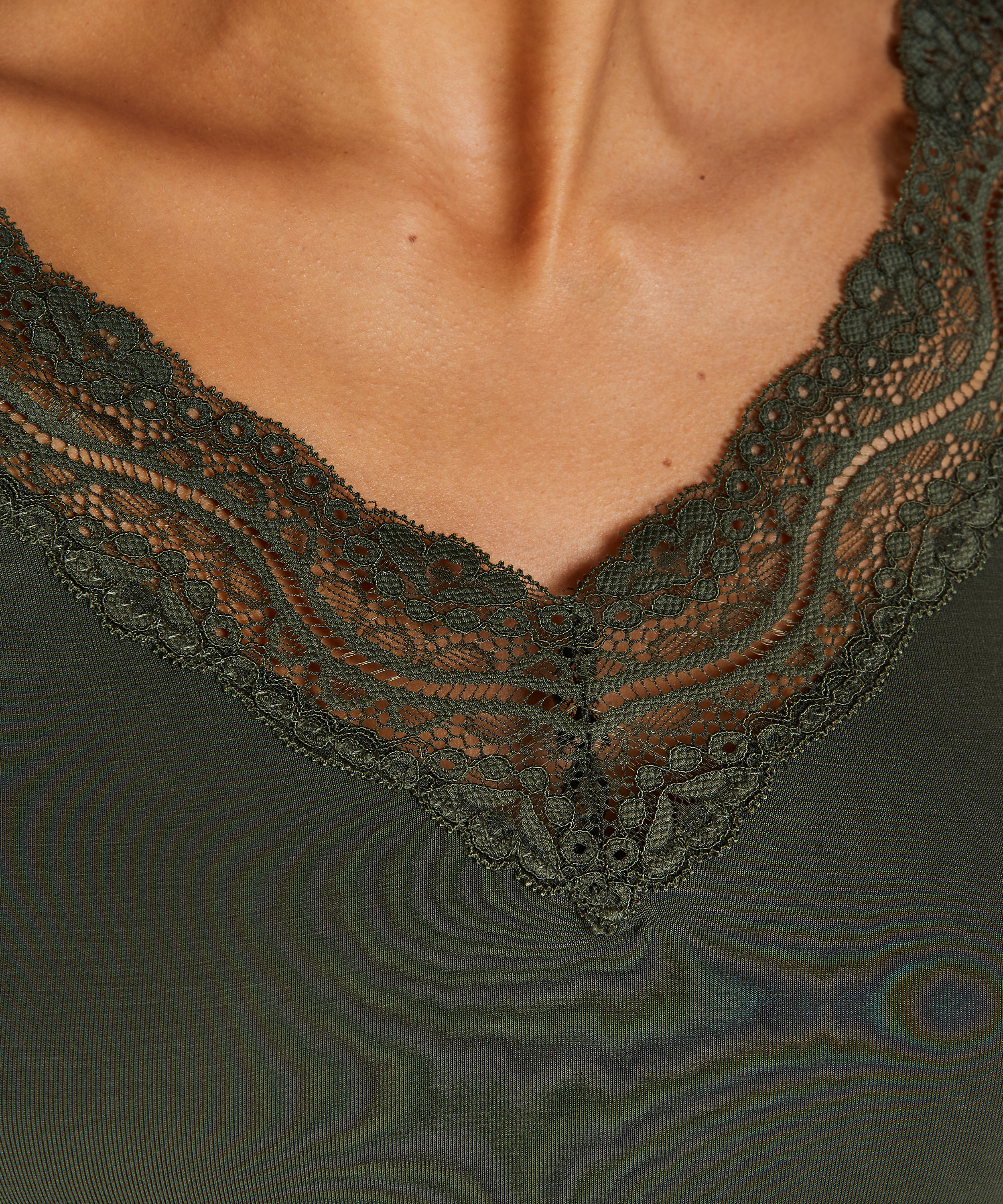 Egner seg for ekte avslapning. Denne skjorten har lange ermer og er laget av et fint stoff. Den har en pen v-hals og en god passform. Match den med favorittpysjamasbuksene dine.
