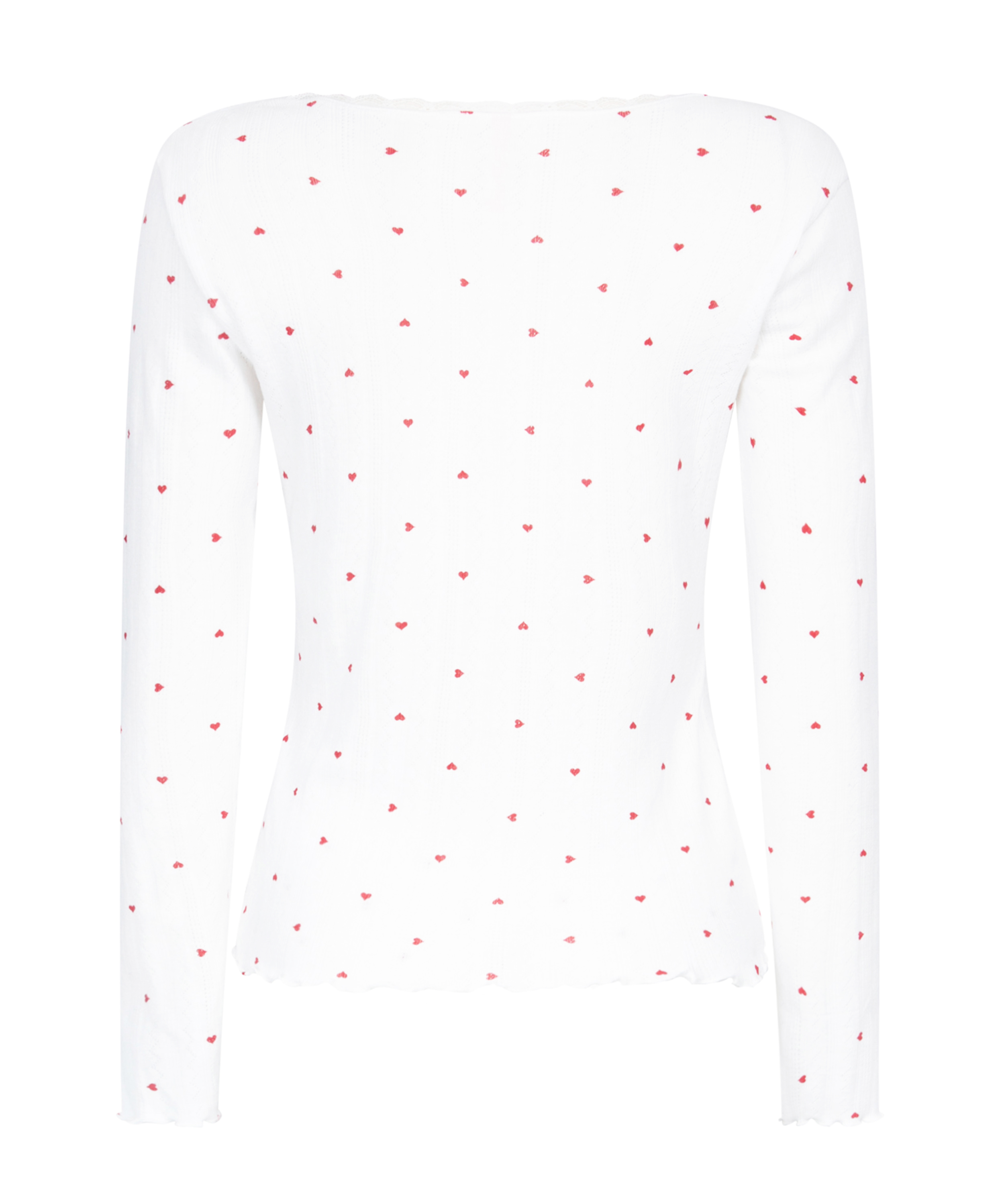 Føl deg komfortabel i denne herlige topp med lange ermer og rund hals. Den er laget av et svært mykt stoff og har et nydelig mønster og søte rynkede kanter. Kombiner den med en matchende bukse slik at du får et perfekt og behagelig sett!