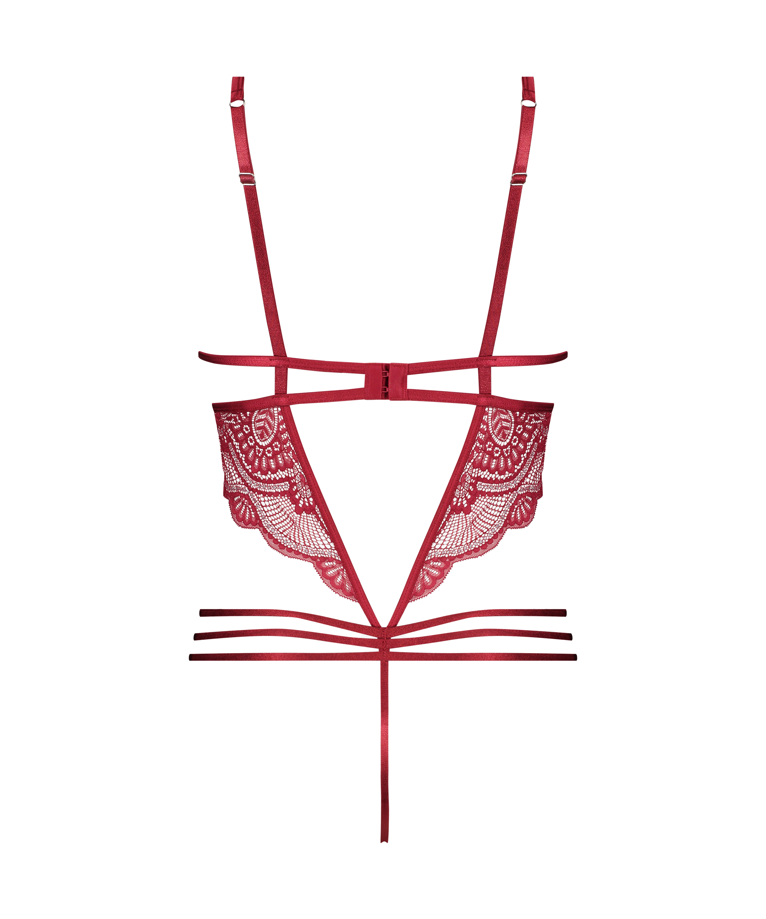 Denne bodyen er laget av blonder, kombinert med et satengstoff. Bodyen har spiler under skålene. De ekstra strappy detaljene er helt spesielle for denne bodyen. En del av Private-kolleksjonen.