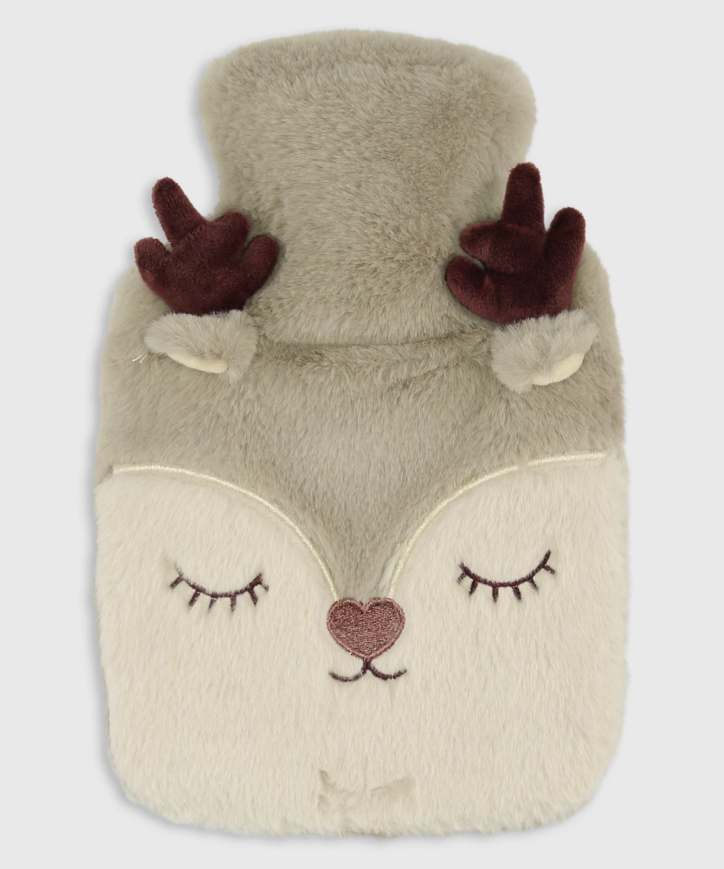 Hvor søt er ikke denne varmeflasken? Perfekt til å holde deg varm på kalde dager. Flasken er dekket av et mykt materiale i en reinsdyrdesign. Så fint!