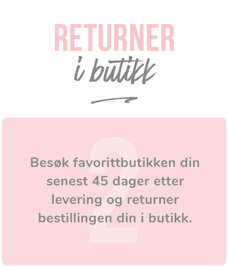 Gratis retur i butikk. Vi håper du blir glad for din(e) nye vare(r).