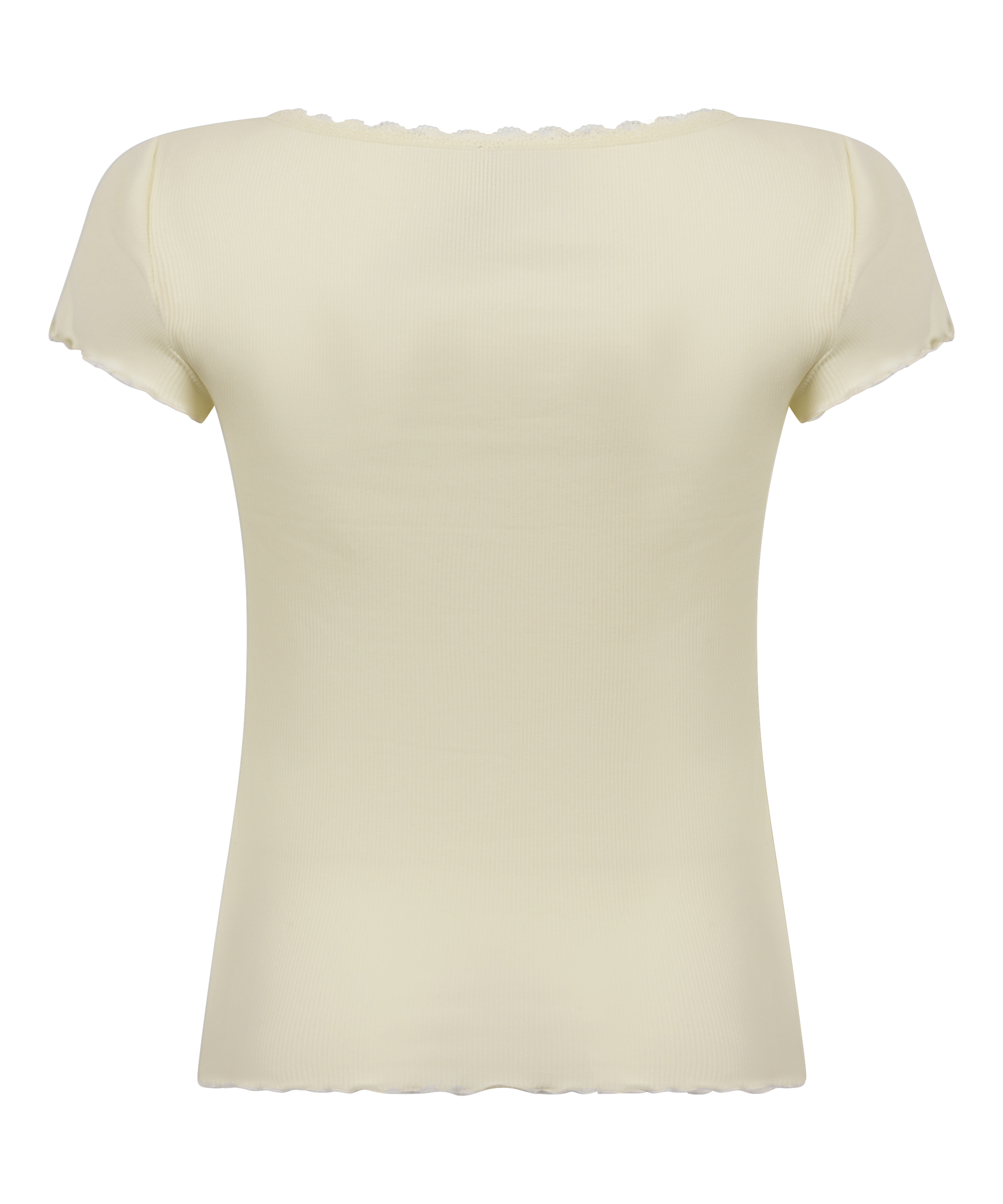 Føl deg komfortabel i denne kortermede pyjamastoppen med rund hals og blondedetaljer. Rysjer på ermene og i nederkant gir en leken touch. Det myke, tøyelige stoffet sørger for komfort hele natten.