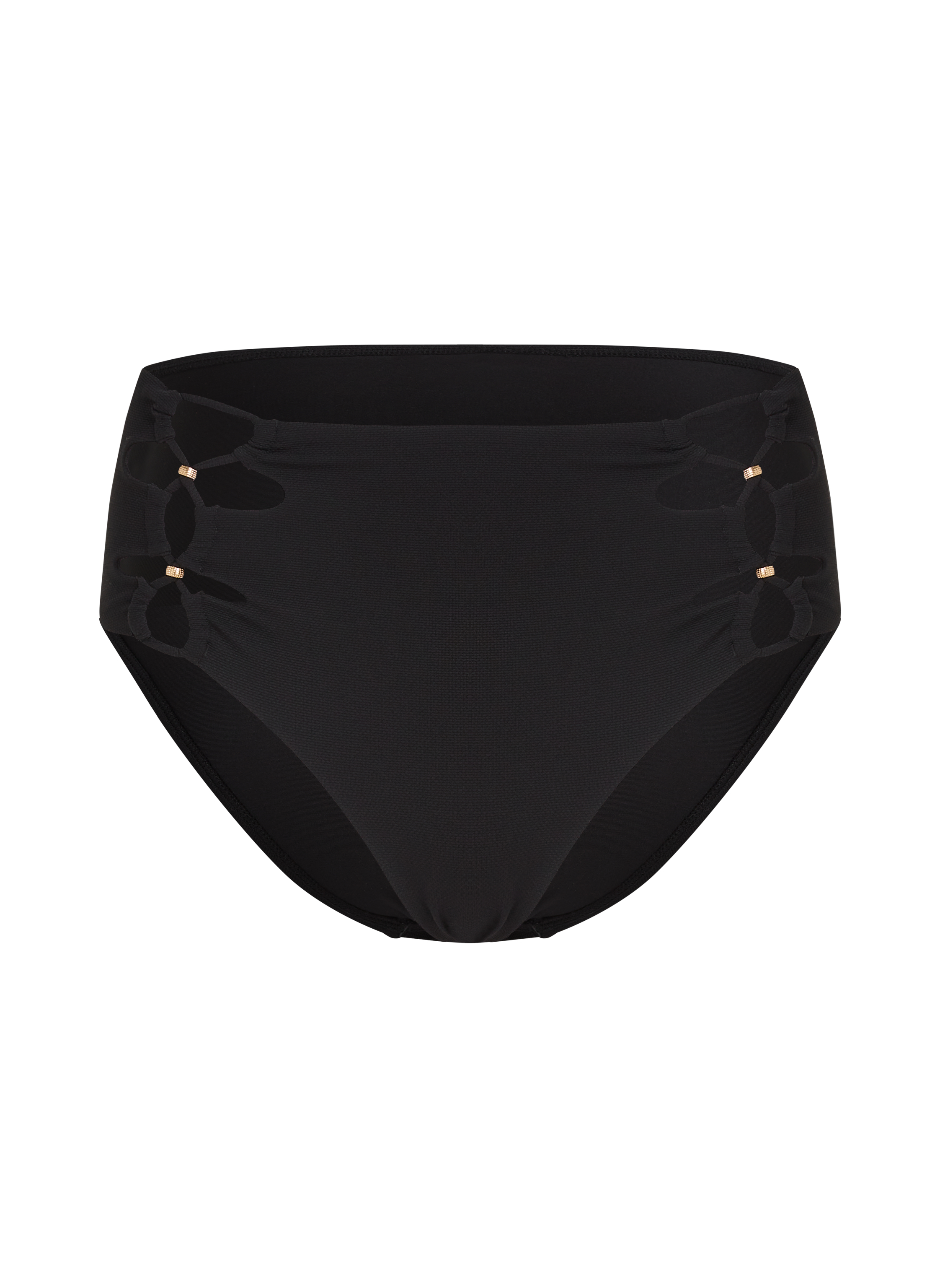 Ta steget inn i retroglamouren med vår nydelige bikinitruse med høy midje! Dette vintageinspirerte plagget har en smigrende høy midje som omslutter figuren din på de riktige stedene. Det delikate blondemønsteret på sidene tilfører et feminint preg og er utsmykket med luksuriøse gullfargede perler. Kombiner den med din favorittbikinitopp for en tidløs og elegant look!