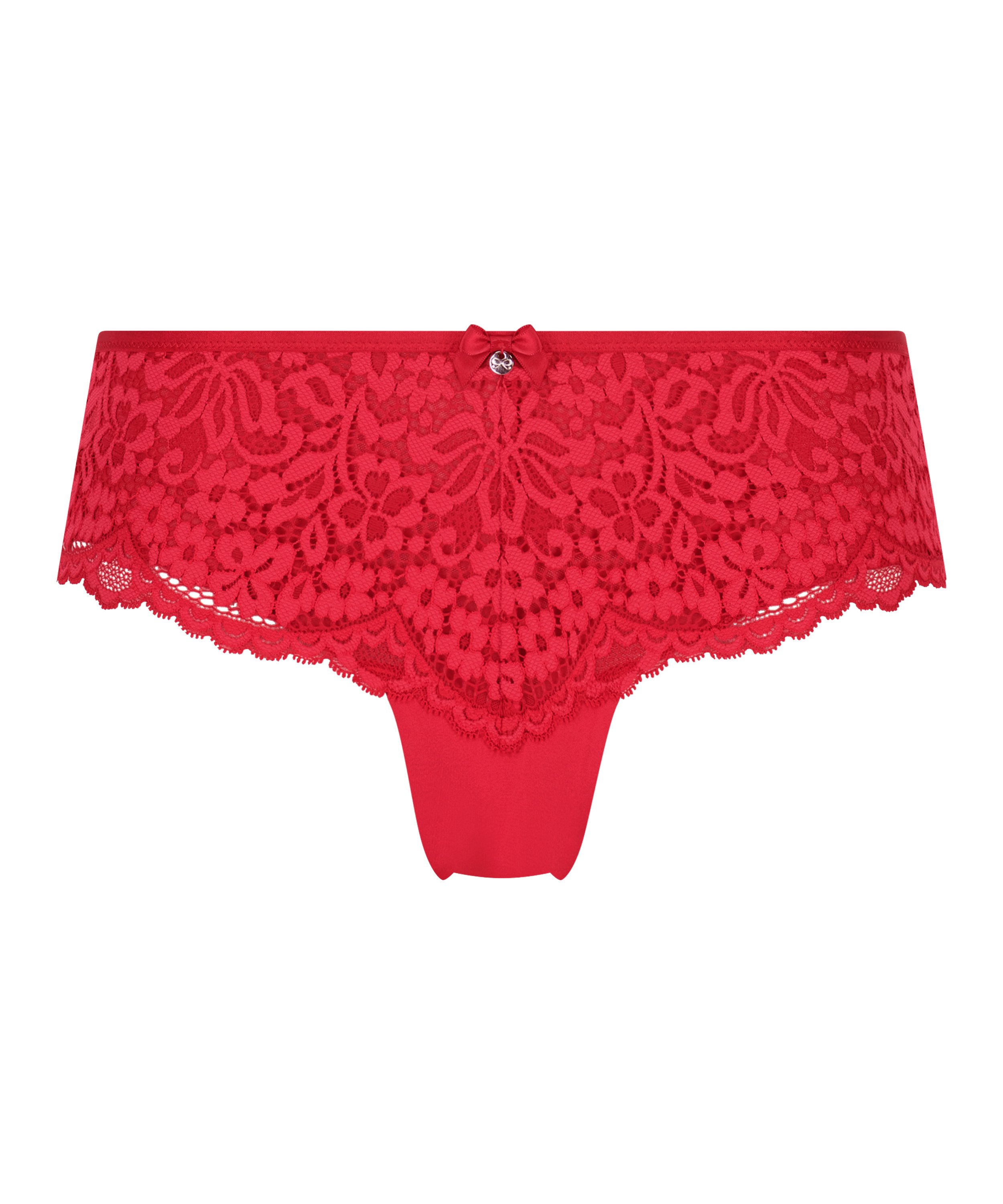 Gjør undertøysettet ditt komplett med denne brasilianske trusen. Den er laget av blonder og har en søt sløyfe foran. Kombiner med den matchende BH-en og du har et komplett sett!
