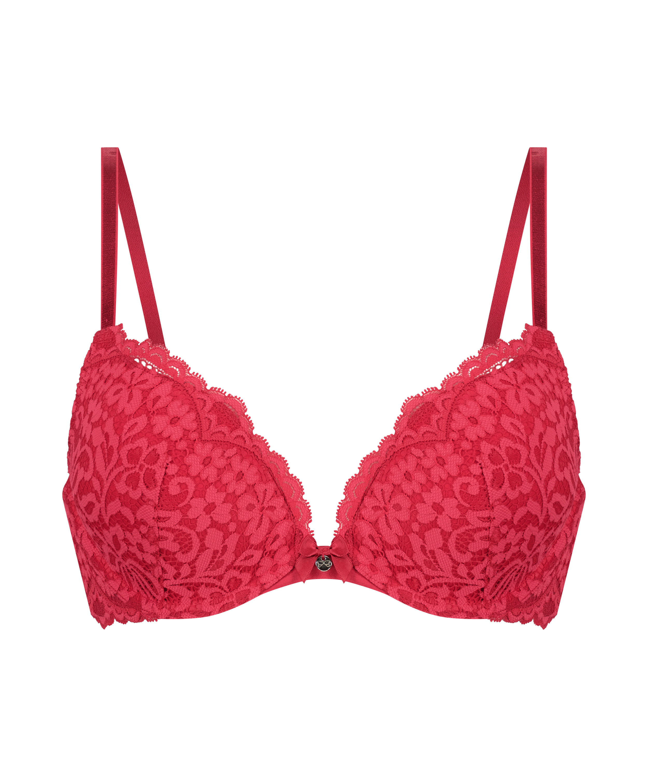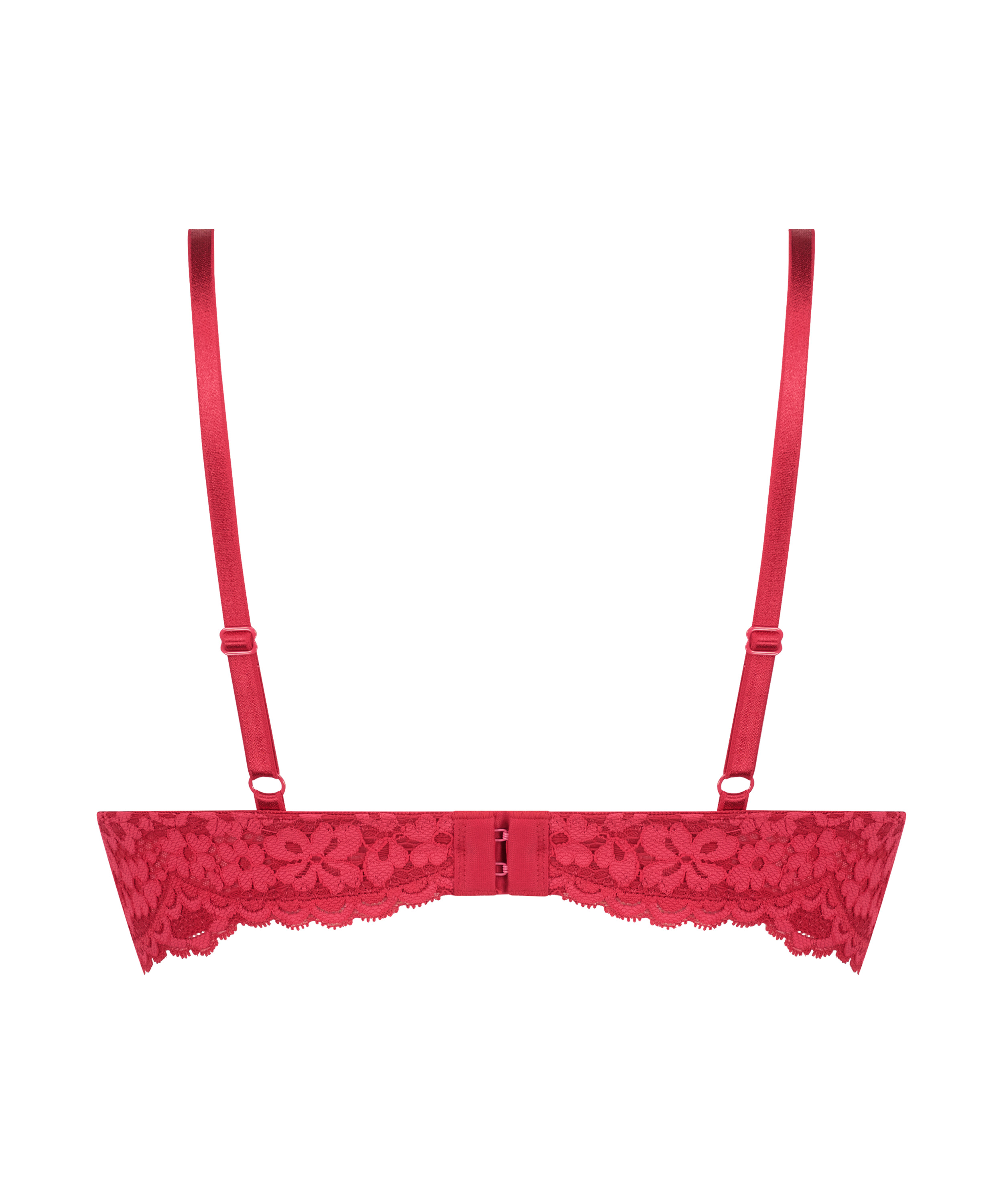 Denne BH-en er virkelig et må-ha! BH-en er forseggjort med blonder over det hele og fine detaljer som sløyfen og det fargede understoffet som du skimter gjennom blondene. Kombiner med den matchende trusen og du har et komplett sett!