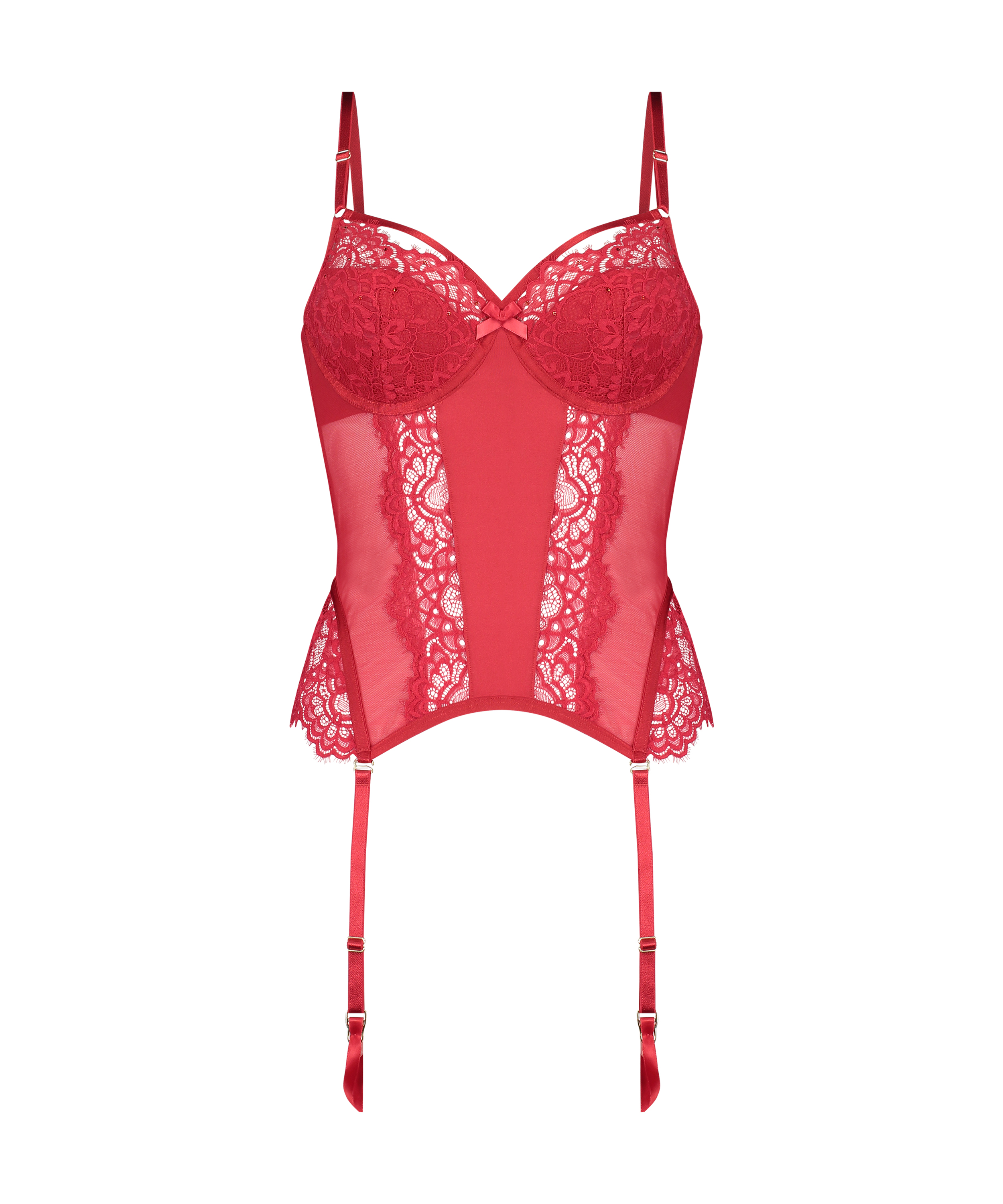I denne bustieren vil du føle deg kjempesexy, og det utstråler du fullt og helt! Bustieren er forsynt med sexy detaljer som blonder og elegante rhinsteiner! Kombiner med et pent par strømper og en matchende truse.