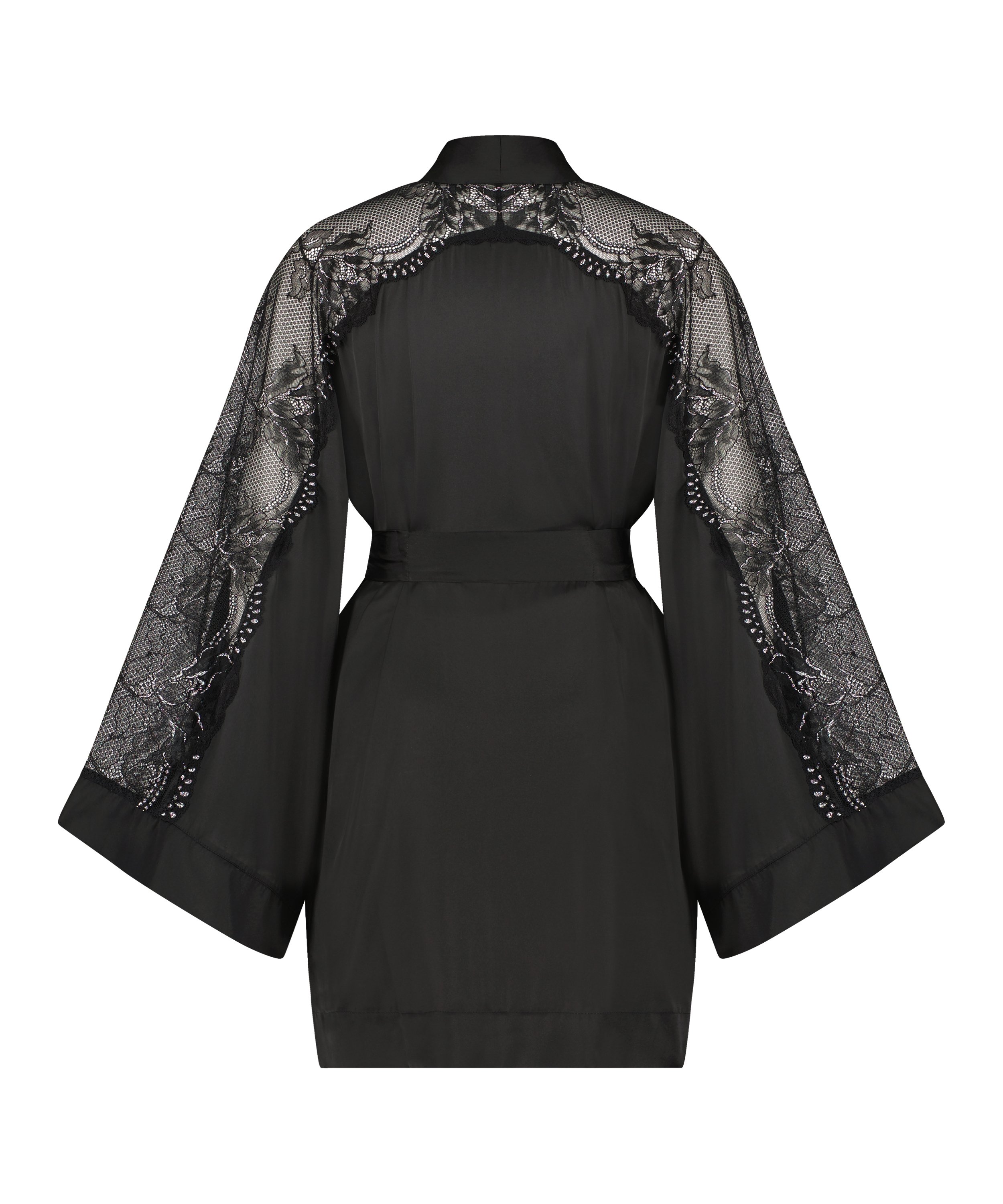 Denne elegante kimonoen fremhever en klassisk silhuett, og gir en glamorøs stil med sølvfarget lurex på blondermene. Den elegante kimonoen har et delikat knytebånd slik at du kan justere den som du vil. Den er laget av glatt og luksuriøs sateng som er delvis gjennomsiktig slik at du får en subtil forførende stil. Kombiner den med Donna underkjole for en gjennomført stil! Denne kimonoen er en del av et kolleksjon i sølvfarget lurex, som kan mikses og matches i det uendelige.