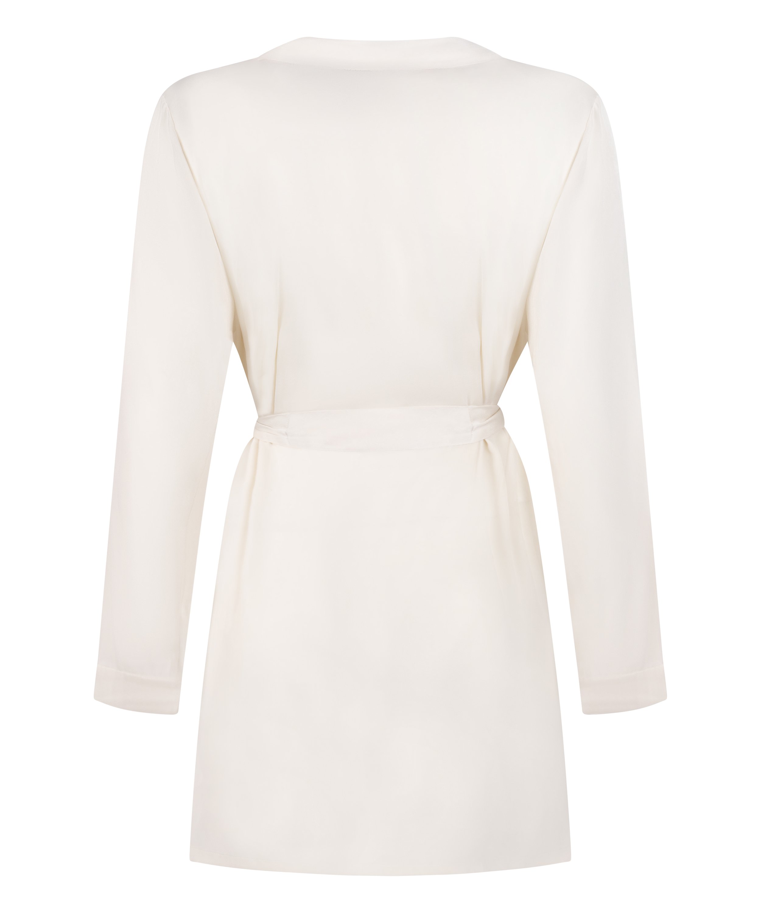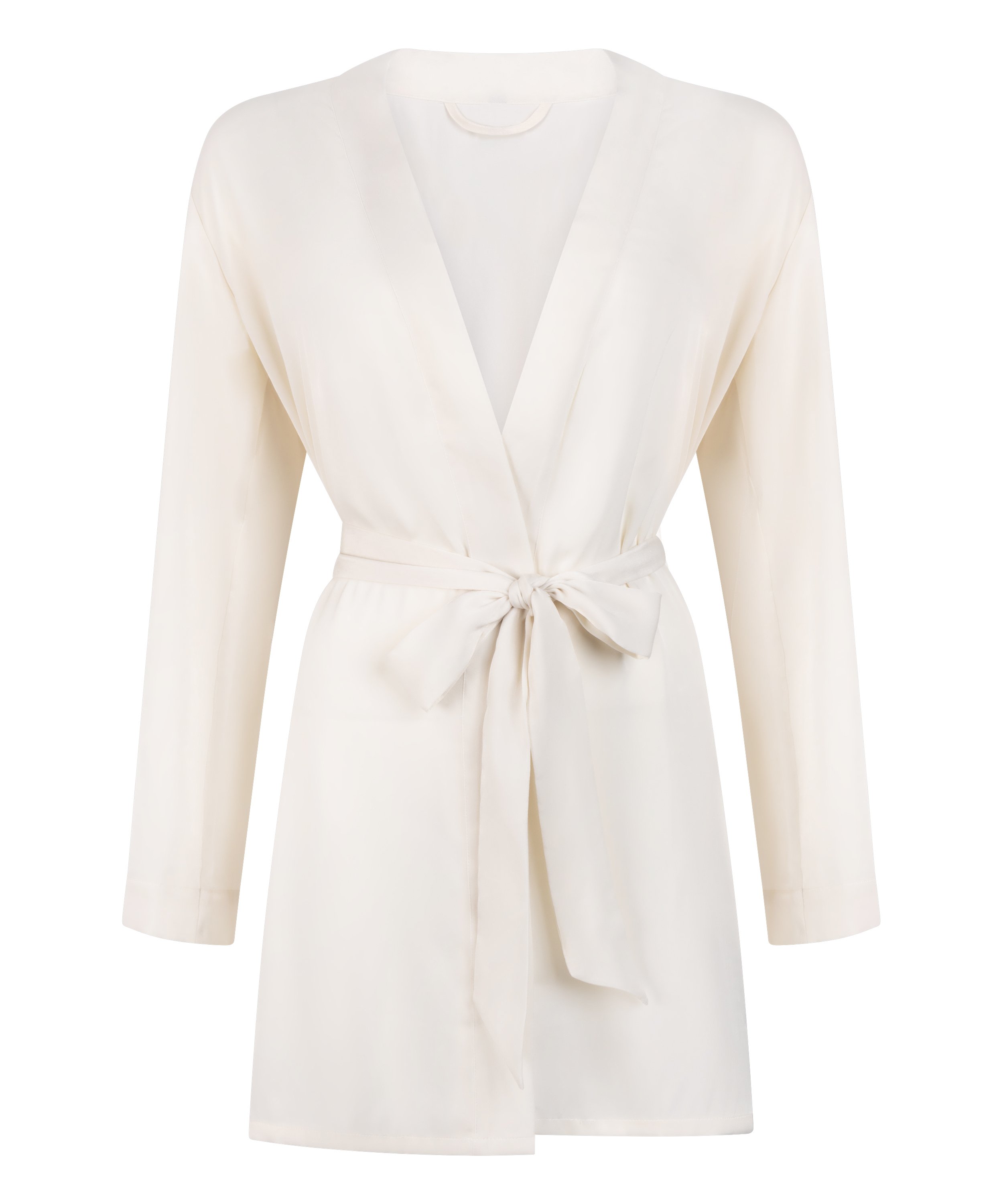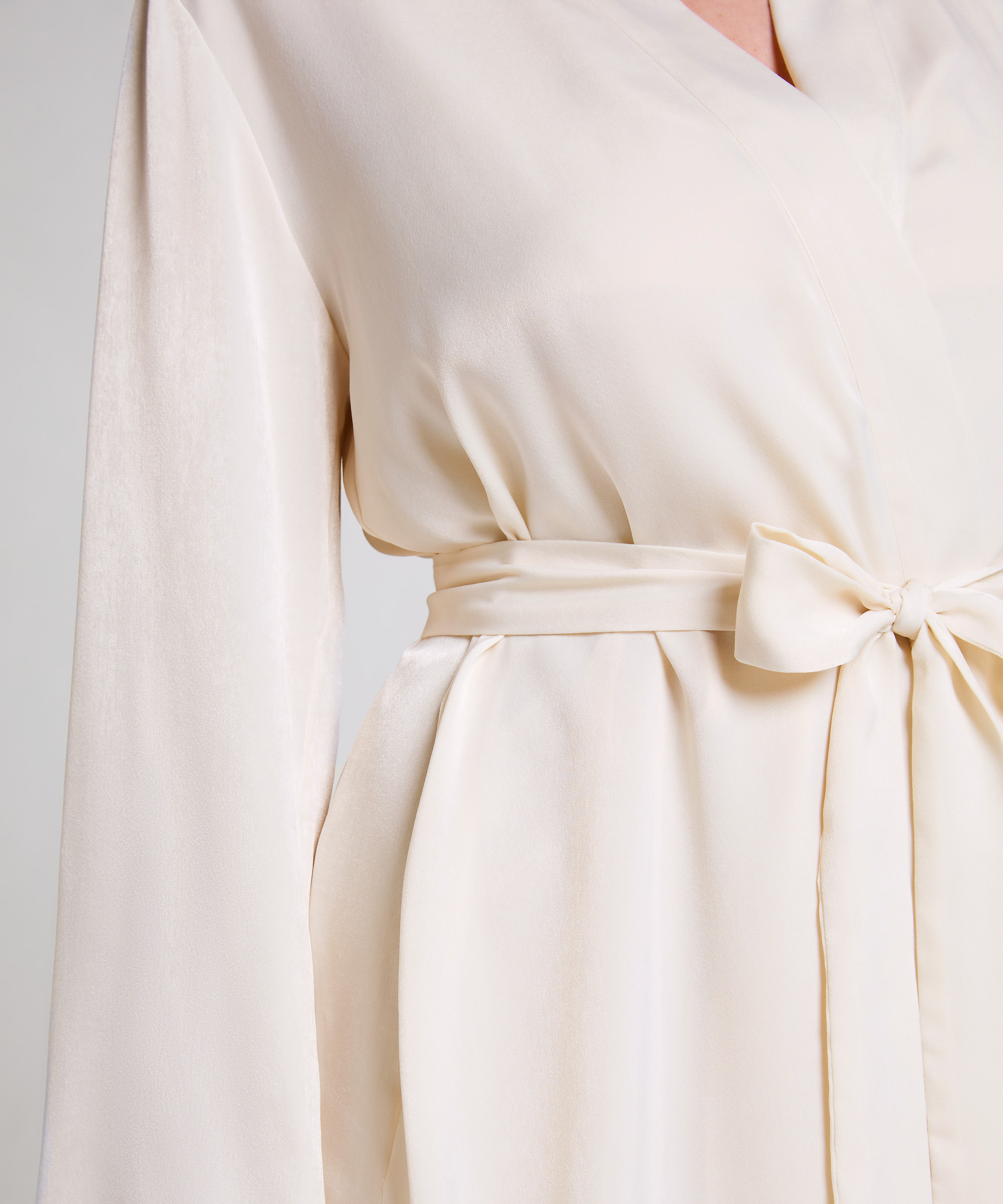 Denne kimonoen er laget av nydelig sateng og kan lukkes foran med et bånd!