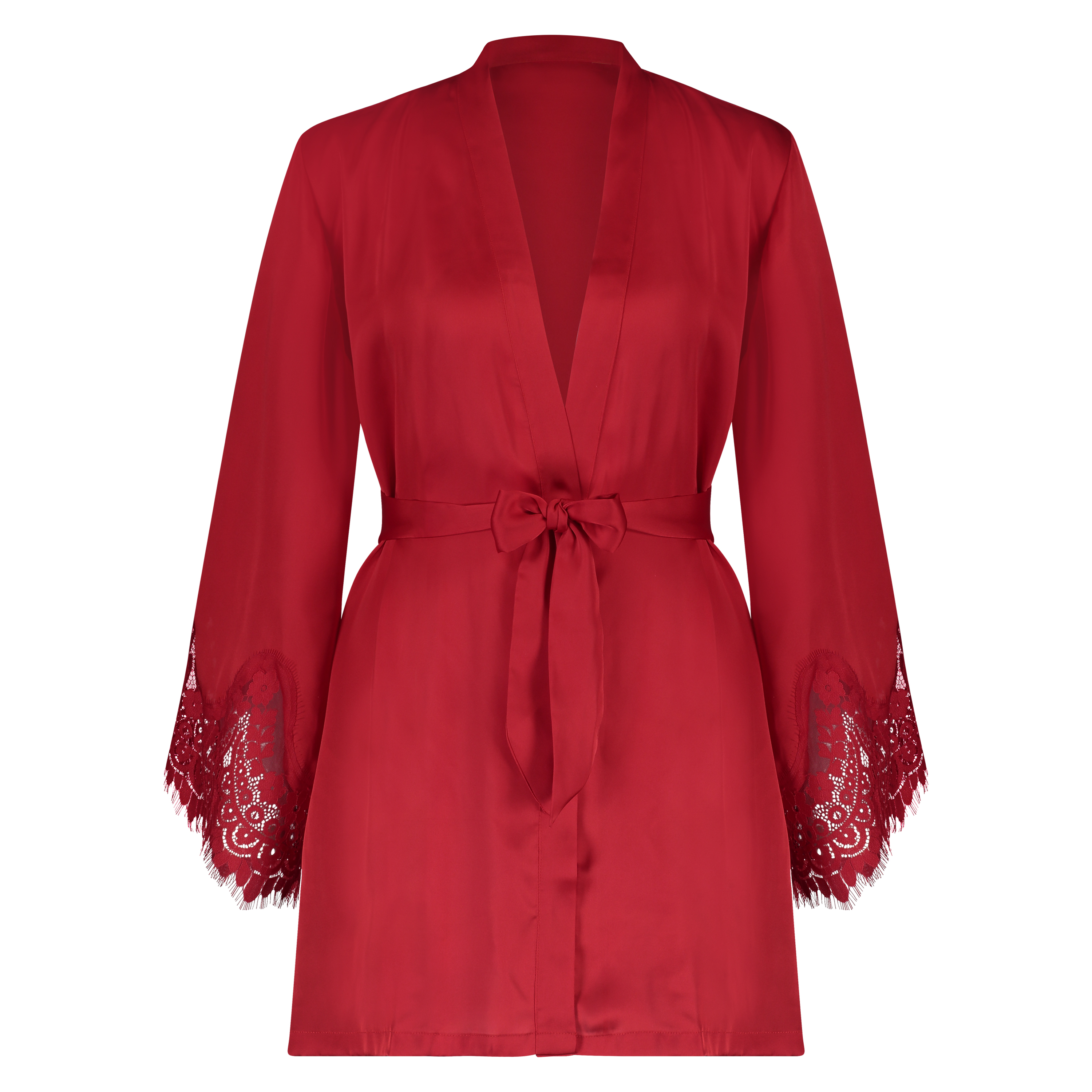 Gjør undertøysettet ditt enda mer forførende med denne kimonoen! Kimonoen ser ut og kjennes som sateng og er pyntet med blonder.