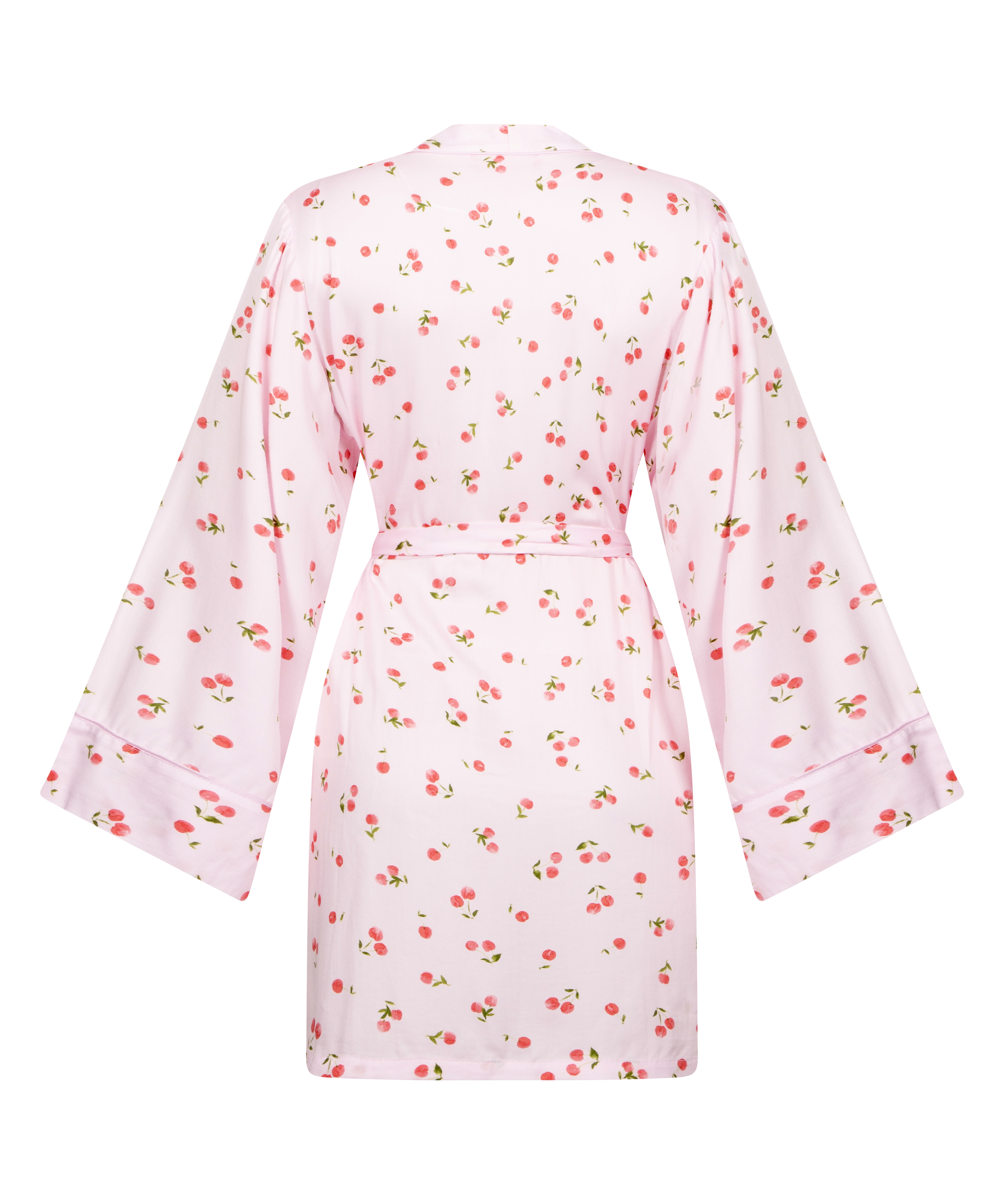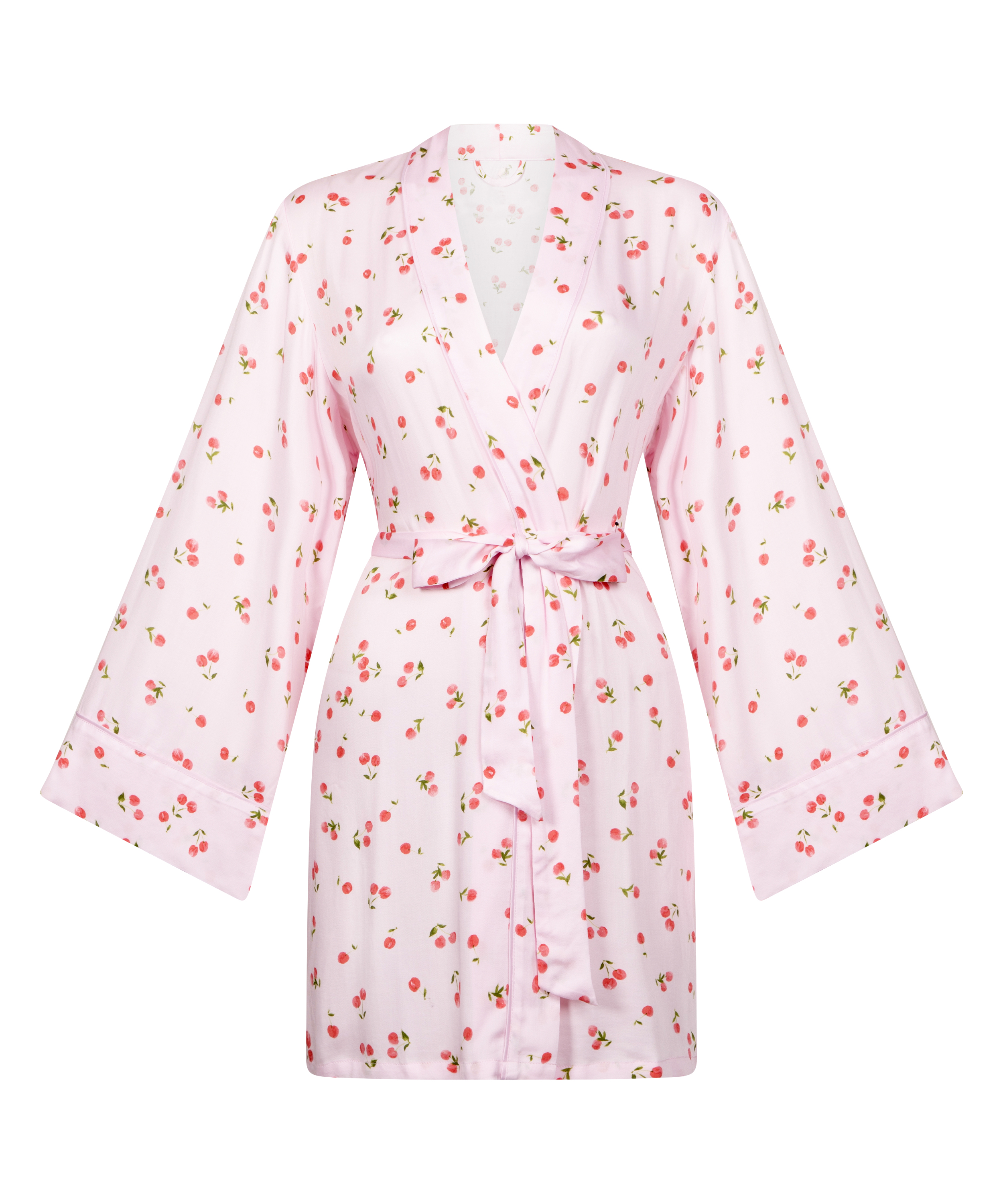 Denne kimonoen er laget av nydelig sateng og kan lukkes foran med et bånd!