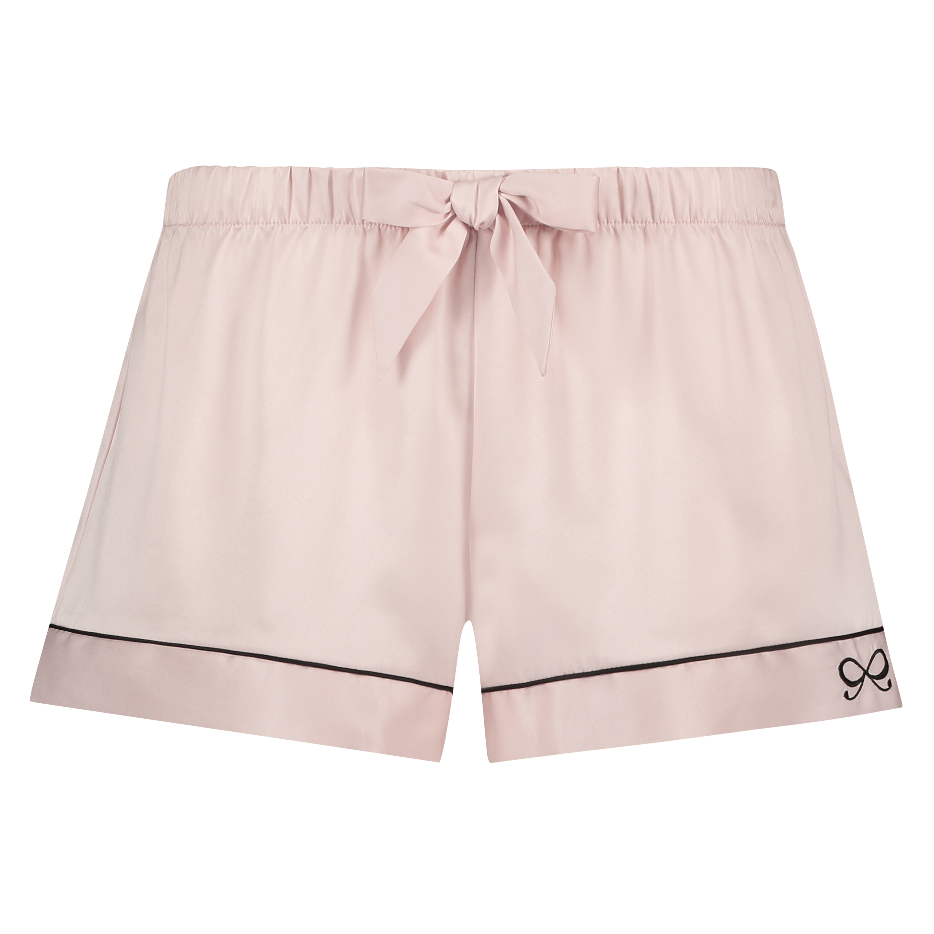 Denne pyjamasshortsen ser ut og kjennes som sateng og har foran en sløyfe av sateng.