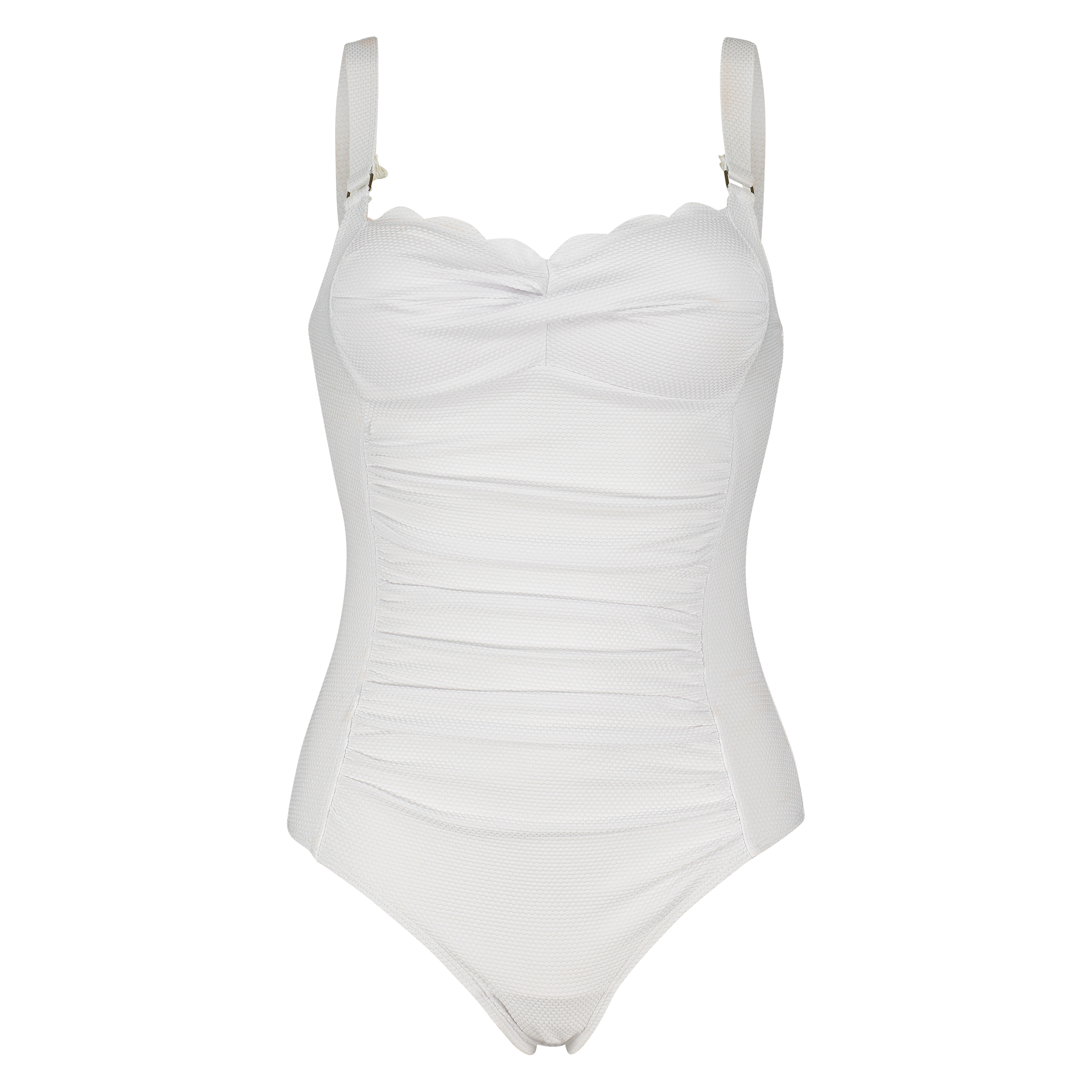 Denne badedrakten har et pent, vevd mønster og brede skulderstropper som gjør den suverent komfortabel. Toppene av skålene er utstyrt med dekorative mønstre.